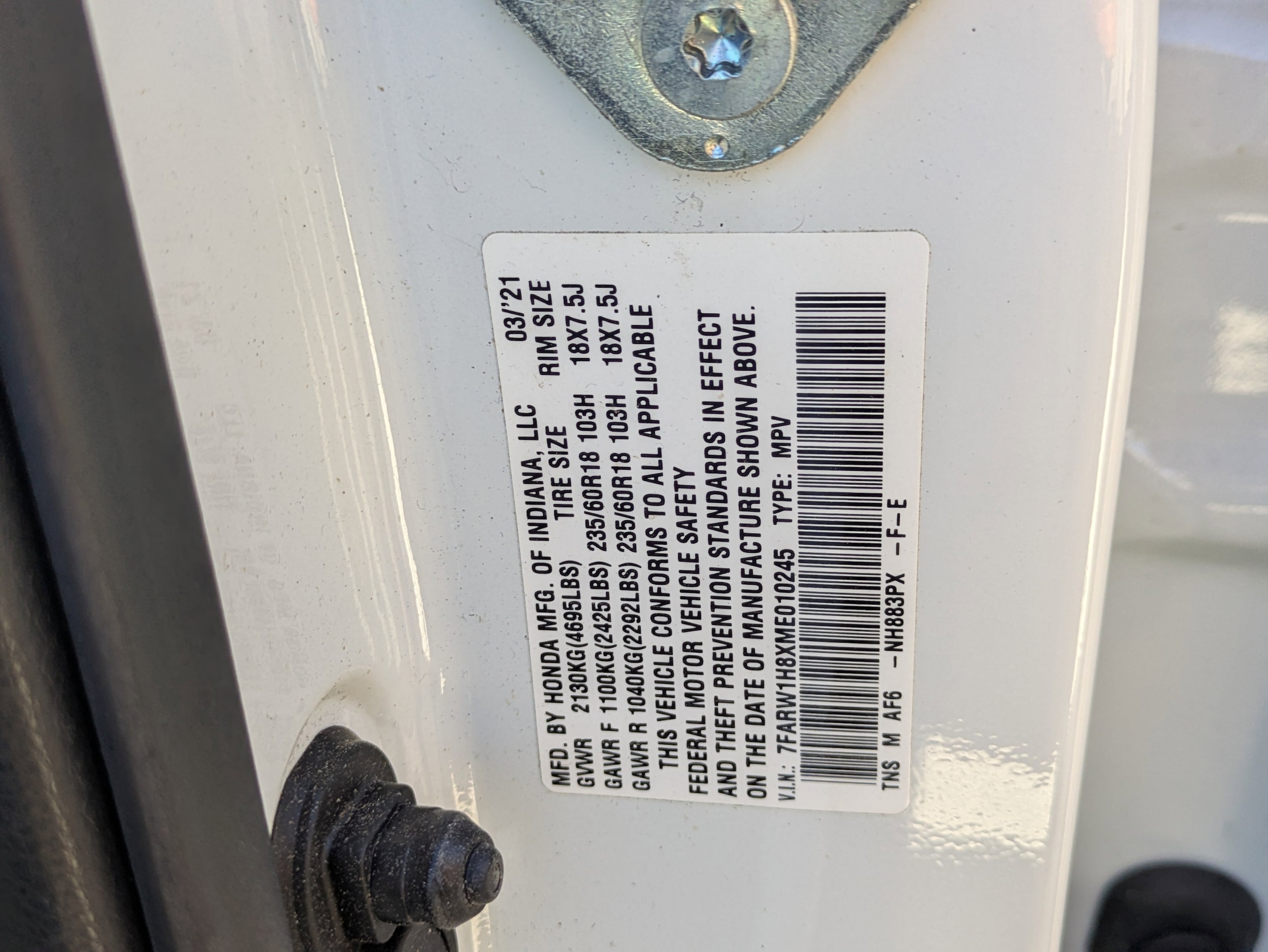 VIN: 7FARW1H8XME010245