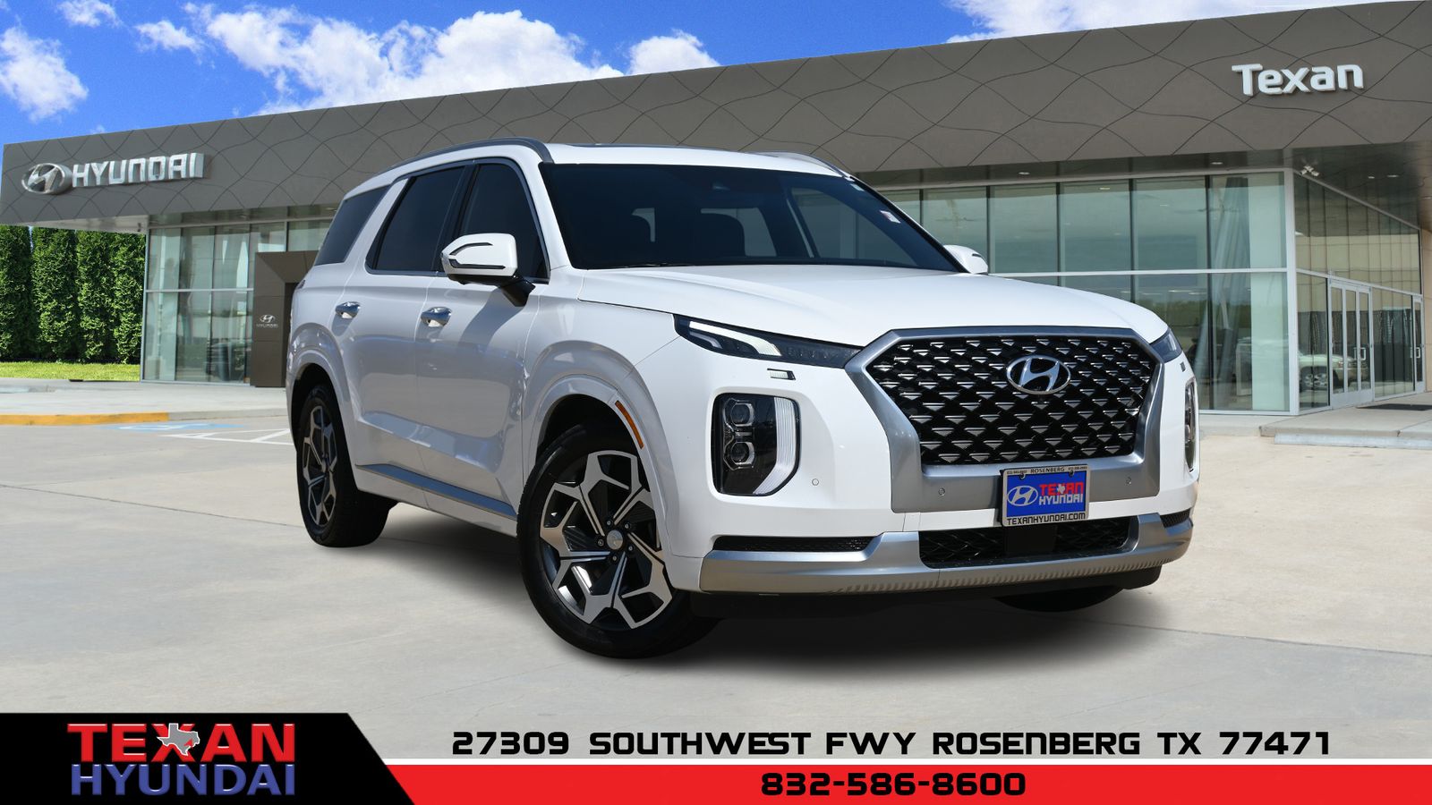 Recent Arrival! Certified. White 2021 Hyundai Palisade Calligraphy FWD 8-Speed Automatic with SHIFTRONIC V6. Texan Hyundai is dedicated to your satisfaction before, during, and after your purchase. We'll go the extra mile to take care of you.