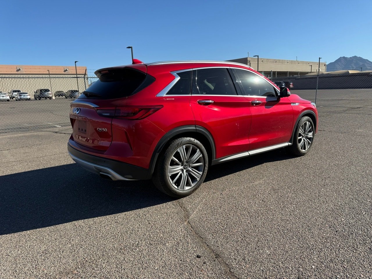 2021 Infiniti QX50 Sensory in stunning Dynamic Sunstone Red delivers premium luxury, advanced technology, and impressive efficiency in a stylish compact luxury SUV. With 23 MPG city / 29 MPG highway, the QX50 offers an exceptional balance of performance and fuel economy for drivers in Scottsdale, Phoenix, and across Arizona. Inside, the Sensory trim provides upscale comfort and cutting-edge technology, highlighted by a premium 16-speaker Bose Performance Series audio system and Infiniti InTouch Navigation to keep you connected and entertained on every drive. The INFINITI QX50 is known for its refined ride, upscale interior, advanced safety technology, and sleek luxury styling, making it one of the most popular luxury SUVs in its class. All vehicles at Infiniti of Scottsdale undergo a comprehensive inspection to ensure quality and reliability. We proudly serve drivers from Scottsdale, Phoenix, Mesa, Tempe, Cave Creek, Glendale, and throughout the Valley.