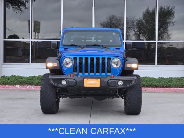 Certified. Odometer is 23782 miles below market average! Clean CARFAX. CARFAX One-Owner. Hydro Blue Pearlcoat 4D Crew Cab 2021 Jeep Gladiator Rubicon 4WD 8-Speed Automatic 3.6L V6 24V VVT. Our Chrysler dealership in Lewisville, TX is proud to serve the Lewisville, Flower Mound, and Highland Village, TX communities with the finest selection of new and used Chrysler, Dodge, Jeep, and RAM vehicles in the Greater Dallas-Ft. Worth area. Our skilled and knowledgeable car sales staff is here to help you with touchless service. Your health and peace of mind is important to us! We can answer any questions on every make and model of the cars, trucks, and SUVs we have in stock. Our team is here to help you find the right and perfect vehicle for your needs and budget and we want you to be excited to get behind the wheel of the vehicle of your choice for a test drive. We have over 400 new Chrysler, Dodge, Jeep, and RAM vehicles on our lot! If you are looking for a car, truck, or SUV we have a huge selection, for every budget! Feel free to browse our new or used inventory 24/7 www.huffineschryslerjeepdodgeramlewisville.com or call us with any questions!