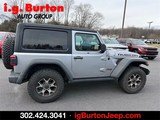 Wrangler Rubicon, 2D Sport Utility, 2.0L I4 DOHC, 8-Speed Automatic, 4WD, Billet Silver Metallic Clearcoat, Black Cloth, 1-Yr SiriusXM Guardian Trial, 4G LTE Wi-Fi Hot Spot, 5-Year SiriusXM Traffic Service, 5-Year SiriusXM Travel Link Service, 8.4" Radio & Premium Audio Group, 8.4" Touchscreen Display, Advanced Brake Assist, Advanced Safety Group, Alpine Premium Audio System, Auto High Beam Headlamp Control, Auto-Dimming Rear-View Mirror, Blind Spot & Cross Path Detection, Cold Weather Group, Daytime Running Lamps LED Accents, Emergency/Assistance Call, For Details, Visit DriveUconnect.com, Front LED Fog Lamps, Full Speed Forward Collision Warning Plus, GPS Navigation, HD Radio, Heated Front Seats, Heated Steering Wheel, LED Lighting Group, LED Premium Reflector Headlamps, LED Taillamps, Off-Road Info Pages, ParkSense Rear Park Assist System, Quick Order Package 22R, Radio: Uconnect 4C Nav w/8.4" Display, Safety Group, SiriusXM Traffic Plus, SiriusXM Travel Link. Recent Arrival! 2021 Jeep Wrangler Rubicon Since 1908, i.G. Burton Auto Group has served Delmarva and its surrounding communities with outstanding sales and service as its longest-standing family-owned and operated dealer group. See why we proudly say "Clean".