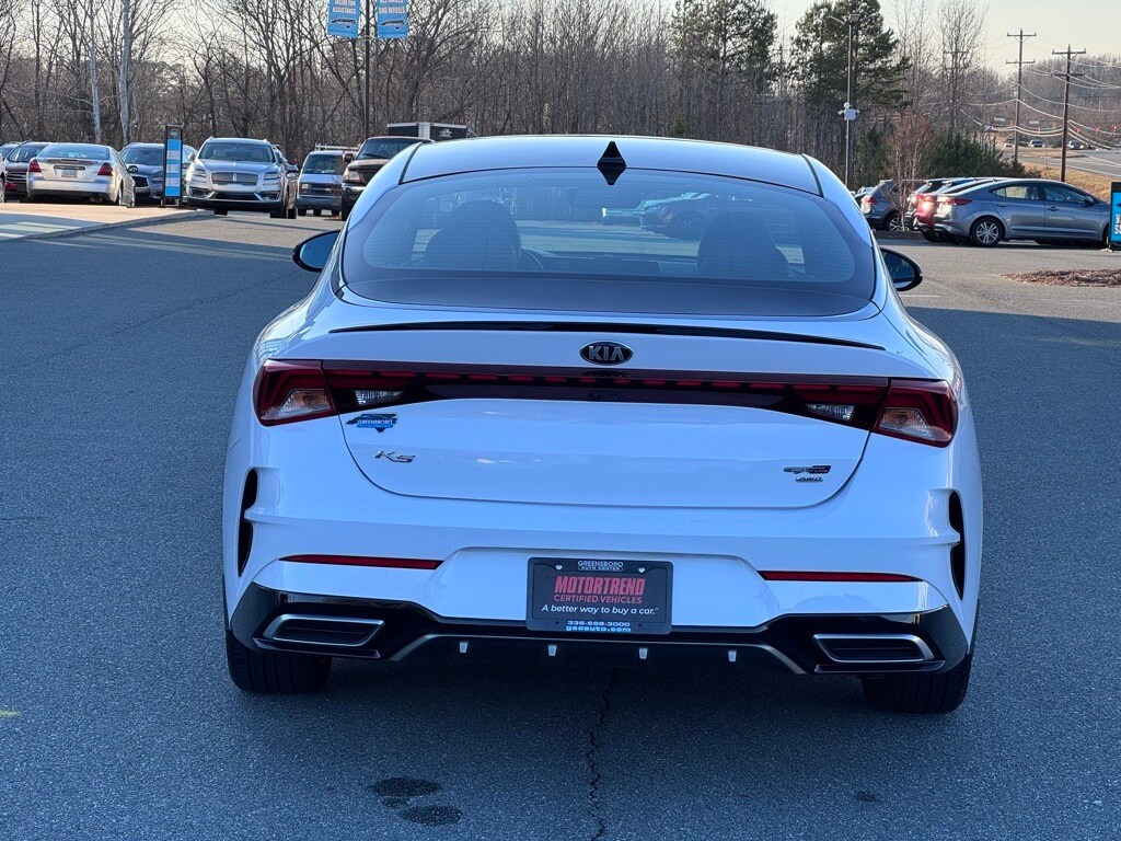 Certified. Glacial White Pearl 2021 Kia K5 GT-Line AWD 8-Speed Automatic 1.6L I4 DGI New Arrival. Recent Arrival! 26/34 City/Highway MPG. Please note, while Greensboro Auto Center makes every effort to ensure our vehicles are listed accurately, we are not responsible for errors or omissions. Please verify that all vehicle options, colors, vehicle condition, mileage, pricing and availability prior to your purchase.