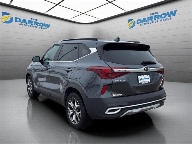 2021 Kia Seltos EX Gravity Gray 2.0L I4 MPI AWD. Manufacturer certified, non-smoker, Bluetooth connection for mobile phone, bought and serviced here, Carfax 1-owner, good maintenance history, power sliding sunroof/moonroof, premium heated leather upholstery, push button start, rear back-up camera with display, remote vehicle start system, Android Auto & Apple CarPlay, blind spot monitoring, heated front seats, lane keep assist, wireless charging pad, 4 brand new tires, brand new battery. Certified. Includes exclusive membership status in the Russ Darrow Rewards Program. Earn points for every dollar spent on goods and services at any Russ Darrow location.