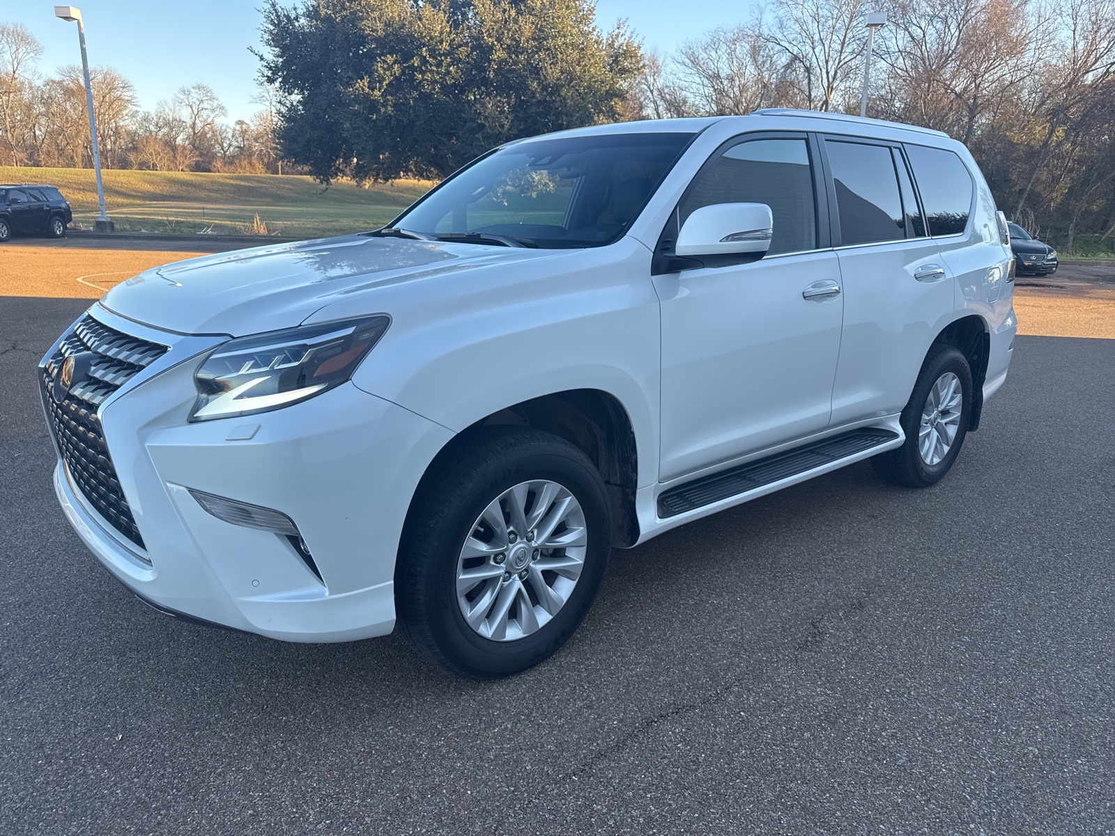 CARFAX One-Owner. Clean CARFAX. Certified. White 2021 Lexus GX 460 4.6L V8 DOHC Dual VVT-i 32V 6-Speed Automatic with Sequential Shift ECT L/Certified Certified, 18" x 7.5J Aluminum Alloy Wheels, 3.909 Axle Ratio, 3rd row seats: split-bench, 4-Wheel Disc Brakes, 9 Speakers, ABS brakes, Accessory Package, Air Conditioning, Alloy Wheel Locks, Alloy wheels, AM/FM radio: SiriusXM, Anti-whiplash front head restraints, Auto High-beam Headlights, Auto tilt-away steering wheel, Auto-dimming Rear-View mirror, Automatic temperature control, Brake assist, Bumpers: body-color, Cargo Net, Cargo-Area Tonneau Cover, Carpet Cargo Mat, CD player, Compass, Delay-off headlights, Driver door bin, Driver vanity mirror, Driver's Seat Mounted Armrest, Dual Front & Rear Auto Air Conditioner, Dual front impact airbags, Dual front side impact airbags, Electronic Stability Control, Emergency communication system, Exhaust Tip, Exterior Parking Camera Rear, Front & Rear Heated Seats, Front anti-roll bar, Front Bucket Seats, Front dual zone A/C, Front reading lights, Front wheel independent suspension, Fully automatic headlights, Garage door transmitter: HomeLink, Headlamp Washers, Heated door mirrors, Illuminated entry, Illuminated running boards, Intuitive Parking Assist, Key Gloves, Knee airbag, Leather Shift Knob, Leather steering wheel, LED Front Fog & Driving Lamp, Low tire pressure warning, Memory seat, Navigation Package, NuLuxe Seat Trim, NuLuxe Synthetic Leather Seat Trim, Occupant sensing airbag, Outside temperature display, Overhead airbag, Overhead console, Panic alarm, Passenger door bin, Passenger seat mounted armrest, Passenger vanity mirror, Power door mirrors, Power driver seat, Power moonroof, Power passenger seat, Power steering, Power windows, Premium Package, Radio data system, Radio: Lexus Multimedia System, Rear anti-roll bar, Rear reading lights, Rear seat center armrest, Rear side impact airbag, Rear window defroster, Rear window wiper, Remote keyless entry, Roof rack: rails only, Safety Connect, Security system, Speed control, Speed-sensing steering, Split folding rear seat, Spoiler, Steering wheel memory, Steering wheel mounted audio controls, Tachometer, Telescoping steering wheel, Tilt steering wheel, Tow Hitch Receiver w/Ball Mount, Traction control, Trip computer, Turn signal indicator mirrors, Variably intermittent wipers, Ventilated Front Seats.