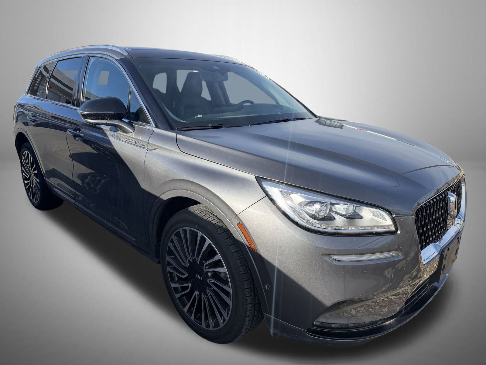 Certified. Asher Gray 2021 Lincoln Corsair Reserve AWD 8-Speed Automatic 4 cylinder Lincoln Certified, 14 Speakers, 19" Bright Machined Aluminum Wheels, 3.81 Axle Ratio, 360-Degree Camera w/Rear Camera Washer, 4-Wheel Disc Brakes, ABS brakes, Active Park Assist Plus, Adaptive Cruise Control w/Traffic Jam Assist, Additional Rear USB Ports (Types A & C), Air Conditioning, Alloy wheels, AM/FM radio: SiriusXM, Auto High-beam Headlights, Auto tilt-away steering wheel, Auto-dimming door mirrors, Auto-dimming Rear-View mirror, Automatic temperature control, Body-Color Front Bumper w/Painted Lower Fascia, Body-Color Plastic Rear Bumper, Brake assist, Bumpers: body-color, Compass, Delay-off headlights, Driver door bin, Driver vanity mirror, Dual front impact airbags, Dual front side impact airbags, Electronic Stability Control, Elements Package, Emergency communication system, Equipment Group 201A, Evasive Steering Assist (ESA), Forward Sensing System, Four wheel independent suspension, Front anti-roll bar, Front Bucket Seats, Front Center Armrest, Front dual zone A/C, Front fog lights, Front reading lights, Fully automatic headlights, Garage door transmitter: HomeLink, Heads-Up Display, Heated door mirrors, Heated front seats, Heated Rear Seat, Heated Steering Wheel, Illuminated entry, Illuminated Front Scuff Plates, Jeweled LED Headlamps, Knee airbag, Leather steering wheel, Lincoln Co-Pilot360 Plus Package, Lincoln Star Media Bin Light Prem Ambient Lighting, Low tire pressure warning, Memory seat, Navigation System, Occupant sensing airbag, Outside temperature display, Overhead airbag, Overhead console, Panic alarm, Passenger door bin, Passenger vanity mirror, Phone As A Key, Power door mirrors, Power driver seat, Power Liftgate, Power moonroof: Panoramic Vista Roof, Power passenger seat, Power steering, Power windows, Premium Leather Heated Comfort Seats, Radio data system, Radio: Revel Audio System w/HD Radio & MP3, Rain Sensing Wipers, Rear anti-roll bar, Rear reading lights, Rear seat center armrest, Rear window defroster, Rear window wiper, Remote keyless entry.