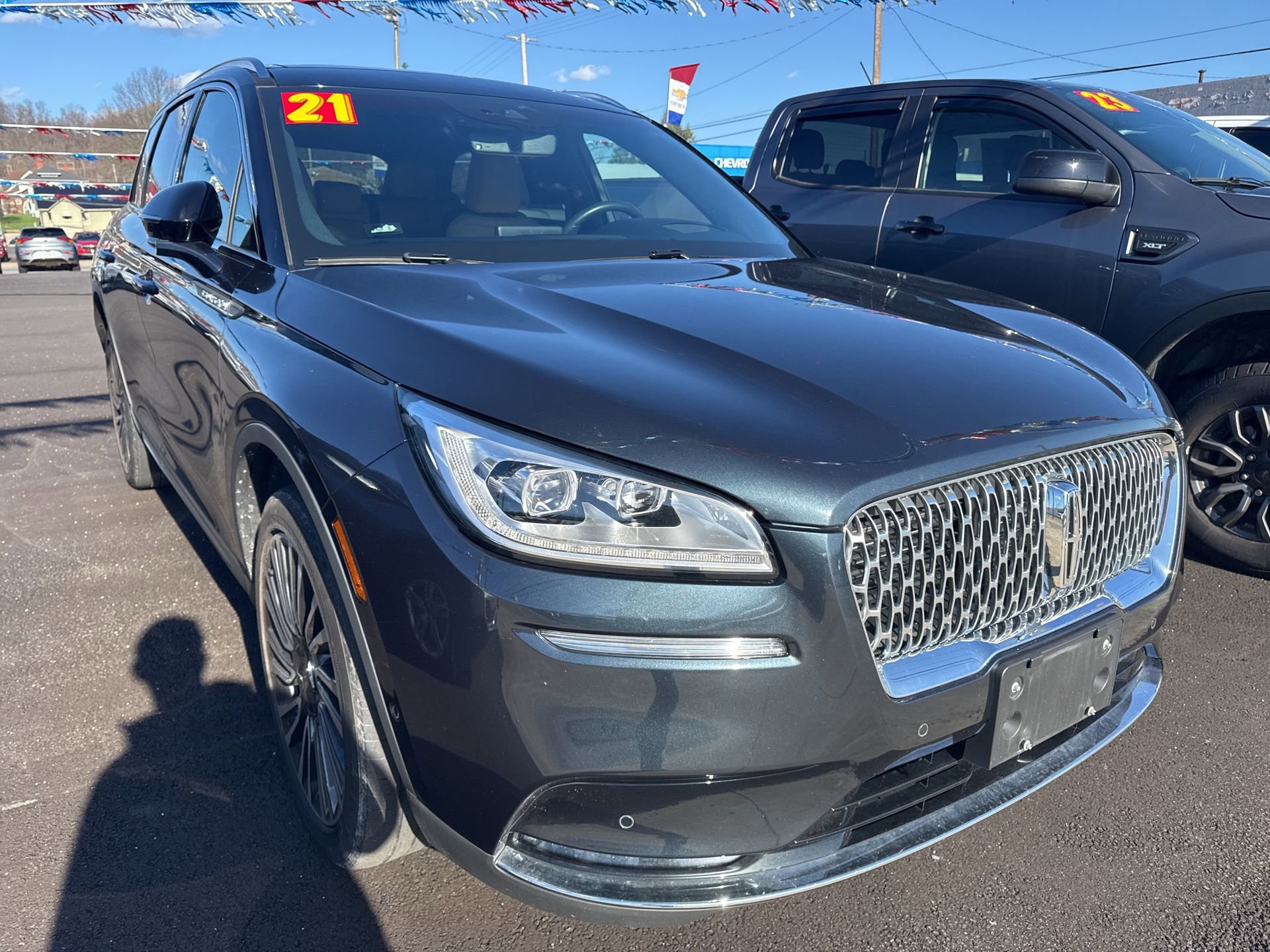 Glockner of Ironton is proud to offer this superb 2021 Lincoln Corsair in Artisan Blue. This 2021 Lincoln Corsair has passed our comprehensive inspection and comes with the following features; Glockner Certified Certified, 14 Speakers, 19 Bright Machined Aluminum Wheels, 3.81 Axle Ratio, 4-Wheel Disc Brakes, ABS brakes, Air Conditioning, Alloy wheels, AM/FM radio: SiriusXM, Auto High-beam Headlights, Auto tilt-away steering wheel, Auto-dimming door mirrors, Auto-dimming Rear-View mirror, Automatic temperature control, Brake assist, Bumpers: body-color, Compass, Delay-off headlights, Driver door bin, Driver vanity mirror, Dual front impact airbags, Dual front side impact airbags, Electronic Stability Control, Emergency communication system, Four wheel independent suspension, Front anti-roll bar, Front Bucket Seats, Front Center Armrest, Front dual zone A/C, Front fog lights, Front reading lights, Fully automatic headlights, Garage door transmitter: HomeLink, Heated door mirrors, Heated front seats, Illuminated entry, Knee airbag, Leather steering wheel, Low tire pressure warning, Memory seat, Navigation System, Occupant sensing airbag, Outside temperature display, Overhead airbag, Overhead console, Panic alarm, Passenger door bin, Passenger vanity mirror, Power door mirrors, Power driver seat, Power Liftgate, Power moonroof: Panoramic Vista Roof, Power passenger seat, Power steering, Power windows, Premium Leather Heated Comfort Seats, Radio data system, Radio: Revel Audio System w/HD Radio & MP3, Rear anti-roll bar, Rear reading lights, Rear seat center armrest, Rear window defroster, Rear window wiper, Remote keyless entry, Security system, SiriusXM Radio.
