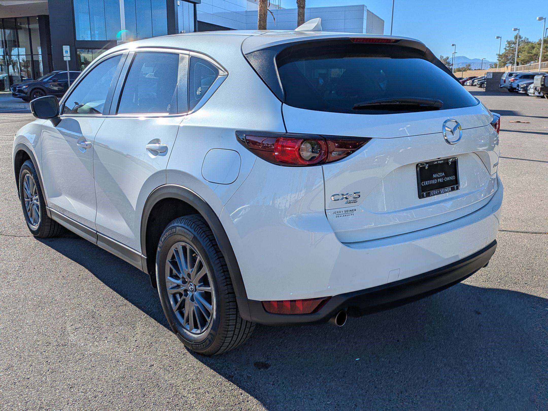 Recent Arrival! Certified. 2021 AWD Snowflake White Pearl Mica Mazda CX-5 4D Sport Utility Sport 6-Speed Automatic. The team at Jerry Seiner Mazda would like to welcome you to our dealership in Las Vegas, where we’re confident you’ll find the vehicles you’re looking for at a price you can afford. Come and check out our full selection of new Mazda vehicles, or get a great deal on a reliable used car, truck, or SUV. No matter which vehicle you decide on, our professional finance team will help you get settled with a competitive financing or lease plan.