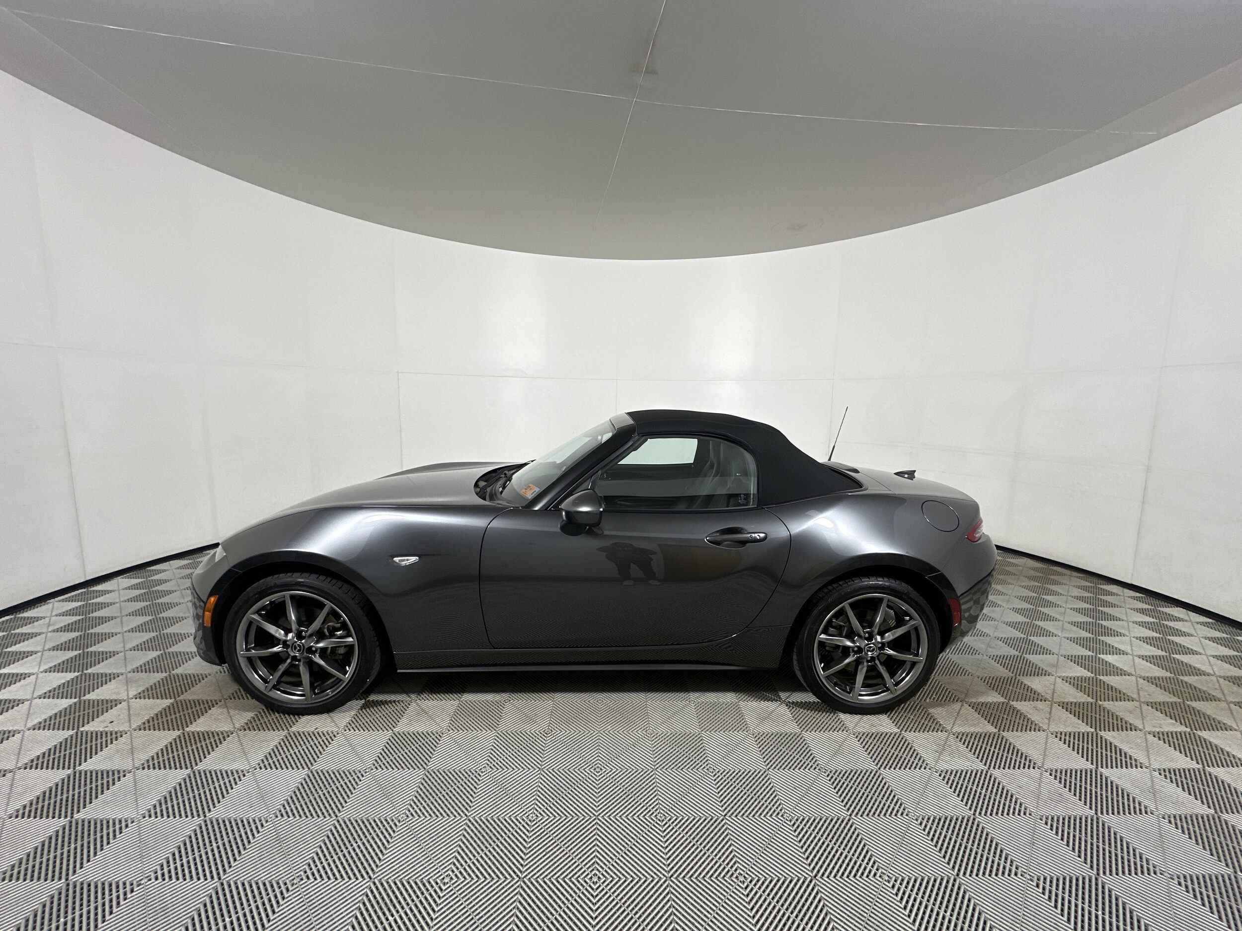 2021 Mazda MX-5 Miata Grand Touring Machine Gray Metallic Certified. Clean CARFAX. Mazda Certified, 4-Wheel Disc Brakes, 9 Speakers, ABS brakes, Air Conditioning, Alloy wheels, AM/FM radio: SiriusXM, AppLink/Apple CarPlay and Android Auto, Auto High-beam Headlights, Auto-dimming door mirrors, Auto-dimming Rear-View mirror, Automatic temperature control, Brake assist, Bumpers: body-color, Convertible roof lining, Convertible roof wind blocker, Delay-off headlights, Driver vanity mirror, Dual front impact airbags, Dual front side impact airbags, Electronic Stability Control, Emergency communication system: Mazda Connect, Exterior Parking Camera Rear, Four wheel independent suspension, Front anti-roll bar, Front Bucket Seats, Front Center Armrest, Fully automatic headlights, Garage door transmitter: HomeLink, Glass rear window, Heated door mirrors, Heated Front Bucket Seats, Heated front seats, Illuminated entry, Leather Shift Knob, Leather Upholstery w/Light Gray Stitching, Low tire pressure warning, Machine Gray Paint Charge, Mazda Connect Infotainment System, Navigation System, Occupant sensing airbag, Outside temperature display, Panic alarm, Passenger vanity mirror, Power door mirrors, Power steering, Power windows, Radio data system, Radio: Bose Audio System w/AudioPilot, Rain sensing wipers, Rear anti-roll bar, Rear window defroster, Remote keyless entry, Speed control, Speed-sensing steering, Sport steering wheel, Steering wheel mounted audio controls, Tachometer, Telescoping steering wheel, Tilt steering wheel, Traction control, Trip computer, Variably intermittent wipers, and Wheels: 17" x 7" Dark Silver Aluminum Alloy.
