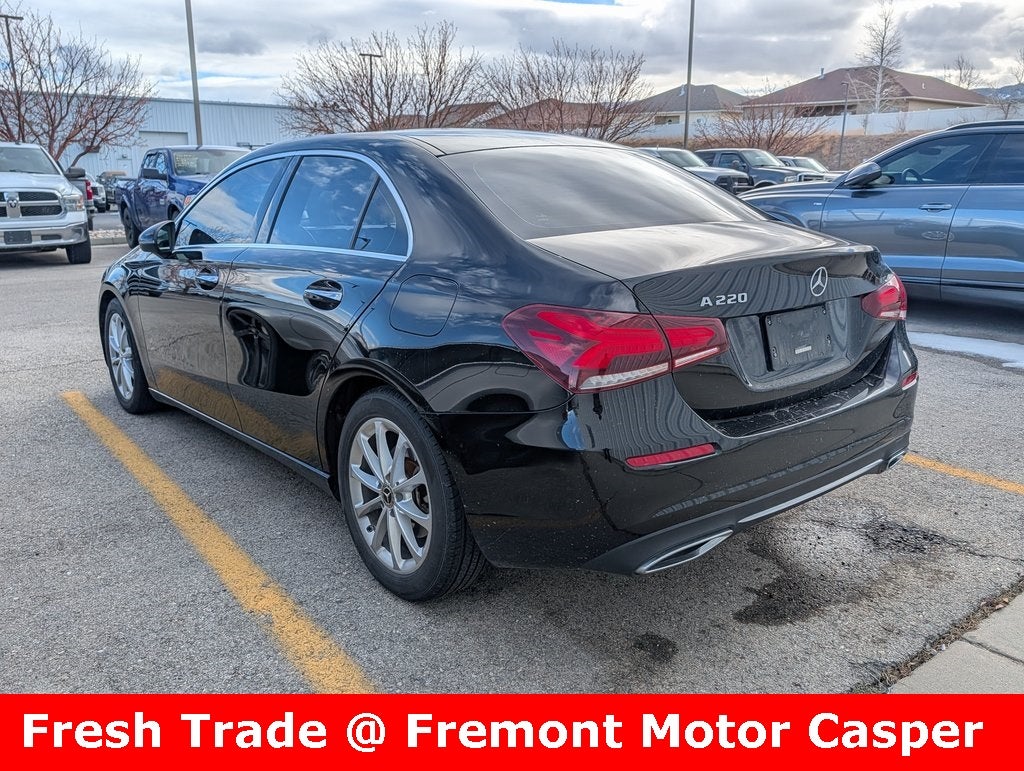 Certified. Black 2021 Mercedes-Benz A-Class A 220 FWD 7-Speed Automatic 2.0L I4 Turbocharged Fremont Certified Certified, 4-Way Lumbar Support, 4-Wheel Disc Brakes, 8 Speakers, ABS brakes, Air Conditioning, Alloy wheels, AM/FM radio, Android Auto, Apple CarPlay, Apple CarPlay/Android Auto, Automatic temperature control, Brake assist, Bumpers: body-color, Child-Seat-Sensing Airbag, Delay-off headlights, Driver door bin, Driver vanity mirror, Dual front impact airbags, Dual front side impact airbags, Electronic Stability Control, Emergency communication system: Mercedes-Benz Emergency Call Service, Exterior Parking Camera Rear, Four wheel independent suspension, Front anti-roll bar, Front Bucket Seats, Front Center Armrest, Front dual zone A/C, Front reading lights, Fully automatic headlights, HD Radio, Heated door mirrors, HERMES Communications Module LTE, Illuminated entry, Knee airbag, Low tire pressure warning, MB-Tex Upholstery, Memory seat, Occupant sensing airbag, Outside temperature display, Overhead airbag is not a control. Recent Arrival! 25/36 City/Highway MPG Certification Program Details: Fremont Certified 3 months/3,000 miles Limited Powertrain Warranty. Visit us today at Fremont Motor Companies, we are Wyoming! We're not just about cars; we're about growing people and communities through relationship-driven transportation. Note: Prices exclude additional properties such as government taxes, finance charges, a dealer documentation fee of $599. The lowest price of the vehicle.