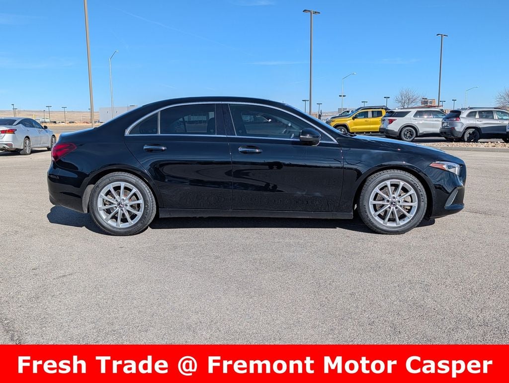 Certified. Black 2021 Mercedes-Benz A-Class A 220 FWD 7-Speed Automatic 2.0L I4 Turbocharged Fremont Certified Certified, 4-Way Lumbar Support, 4-Wheel Disc Brakes, 8 Speakers, ABS brakes, Air Conditioning, Alloy wheels, AM/FM radio, Android Auto, Apple CarPlay, Apple CarPlay/Android Auto, Automatic temperature control, Brake assist, Bumpers: body-color, Child-Seat-Sensing Airbag, Delay-off headlights, Driver door bin, Driver vanity mirror, Dual front impact airbags, Dual front side impact airbags, Electronic Stability Control, Emergency communication system: Mercedes-Benz Emergency Call Service, Exterior Parking Camera Rear, Four wheel independent suspension, Front anti-roll bar, Front Bucket Seats, Front Center Armrest, Front dual zone A/C, Front reading lights, Fully automatic headlights, HD Radio, Heated door mirrors, HERMES Communications Module LTE, Illuminated entry, Knee airbag, Low tire pressure warning, MB-Tex Upholstery, Memory seat, Occupant sensing airbag, Outside temperature display, Overhead airbag, Overhead console, Panic alarm, Passenger door bin, Passenger vanity mirror, Power door mirrors, Power driver seat, Power Driver Seat & Steering Column w/Memory, Power Front Bucket Seats w/Memory, Power moonroof: Panorama, Power passenger seat, Power Passenger Seat w/Memory, Power steering, Power windows, Premium audio system: MBUX, Radio data system, Radio: MBUX Multimedia System, Rain sensing wipers, Rear anti-roll bar, Rear reading lights, Rear seat center armrest, Rear window defroster, Remote keyless entry, Security system, Smartphone Integration, Speed control, Speed-sensing steering, Split folding rear seat, Steering wheel mounted audio controls, Tachometer, Telescoping steering wheel, Tilt steering wheel, Traction control, Trip computer, Turn signal indicator mirrors, Variably intermittent wipers, and Wheels: 17 10-Spoke.