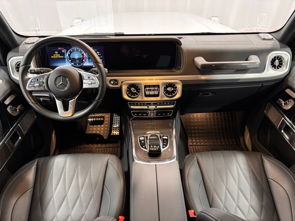This Certified Pre-Owned 2021 Mercedes-Benz G 550 4MATIC is Iridium Silver Metallic with Black Leather seats and AMG Carbon Fiber trim. It is equipped with the Exclusive Interior Package Plus (designo Black Dinamica Headliner, Nappa Leather Dashboard, Comfort Seat Package, Exclusive Interior Plus), AMG Line Package (AMG Sport Exhaust, AMG Exterior Styling), AMG Ride Control, Blind Spot Assist, Burmester Surround Sound System, Active Distance Assist Distronic, Ambient Lighting, Full LED Headlamps, Heated Steering Wheel, Spare Wheel Ring Painted in Obsidian Black, 20" AMG Multispoke Wheels, Parktronic and much more! While we do our best to describe the features and options of each vehicle, mistakes can happen. Be sure to examine the vehicle's features yourself before making your purchase. Certified. Iridium Silver Metallic 2021 Mercedes-Benz G-Class G 550 4MATIC 9-Speed Automatic 4.0L V8. Recent Arrival! Odometer is 31344 miles below market average!