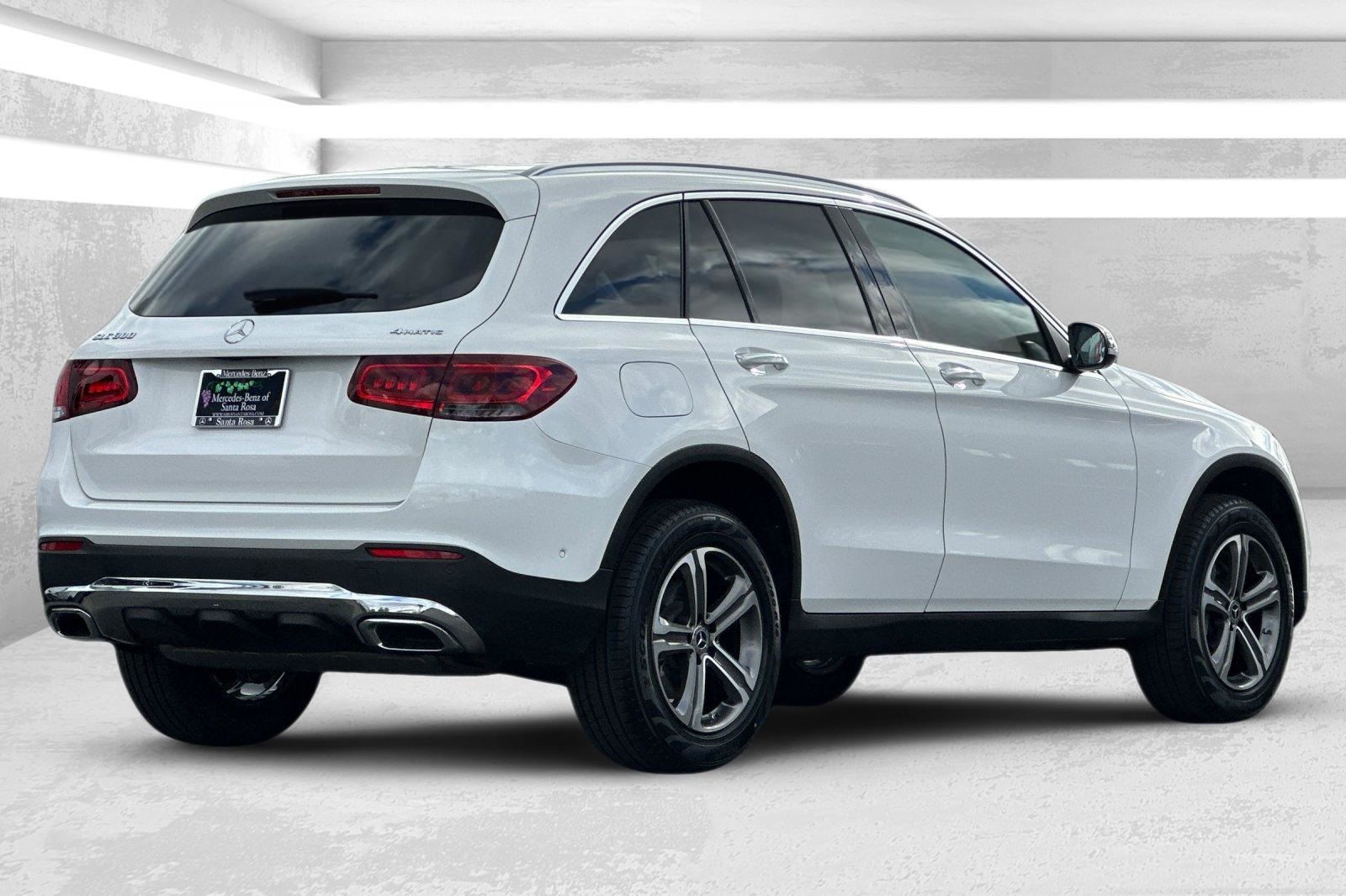 Clean CARFAX. CARFAX One-Owner. Certified. This 2021 Polar White Mercedes-Benz GLC 300 AWD is well equipped and includes these features and benefits: Mercedes-Benz Certified, 10.25" Center Touchscreen Display, 3.27 Axle Ratio, 4-Way Lumbar Support, 4-Wheel Disc Brakes, 6 Speakers, ABS brakes, Air Conditioning, Alloy wheels, AM/FM radio, Apple CarPlay/Android Auto, Auto tilt-away steering wheel, Auto-dimming door mirrors, Auto-dimming Rear-View mirror, Automatic temperature control, Brake assist, Bumpers: body-color, Child-Seat-Sensing Airbag, Delay-off headlights, Driver door bin, Driver vanity mirror, Dual front impact airbags, Dual front side impact airbags, Electronic Stability Control, Emergency communication system: eCall Emergency System, Exterior Parking Camera Rear, Four wheel independent suspension, Front anti-roll bar, Front Bucket Seats, Front Center Armrest, Front dual zone A/C, Front reading lights, Fully automatic headlights, Garage door transmitter: HomeLink, Genuine wood dashboard insert, Heated door mirrors, Heated Front Bucket Seats, Heated front seats, Illuminated entry, Knee airbag, Leather steering wheel, Low tire pressure warning, MB-Tex Upholstery, Memory seat, Occupant sensing airbag, Outside temperature display, Overhead airbag, Overhead console, Panic alarm, Passenger door bin, Passenger vanity mirror, Power door mirrors, Power driver seat, Power Front Seat w/Driver Memory, Power Liftgate, Power passenger seat, Power steering, Power windows, Radio data system, Radio: MBUX Multimedia System, Rain sensing wipers, Rear anti-roll bar, Rear fog lights, Rear reading lights, Rear seat center armrest, Rear window defroster, Rear window wiper, Remote keyless entry, Roof rack: rails only, Security system, Speed control, Speed-sensing steering, Split folding rear seat, Spoiler, Steering wheel memory, Steering wheel mounted audio controls, Tachometer, Telescoping steering wheel, Tilt steering wheel, Traction control, Trip computer, Turn signal indicator mirrors, Variably intermittent wipers, and Wheels: 8J x 18 ET 38 Split 5-Spoke. I4. Odometer is 35687 miles below market average! 21/28 City/Highway MPG.