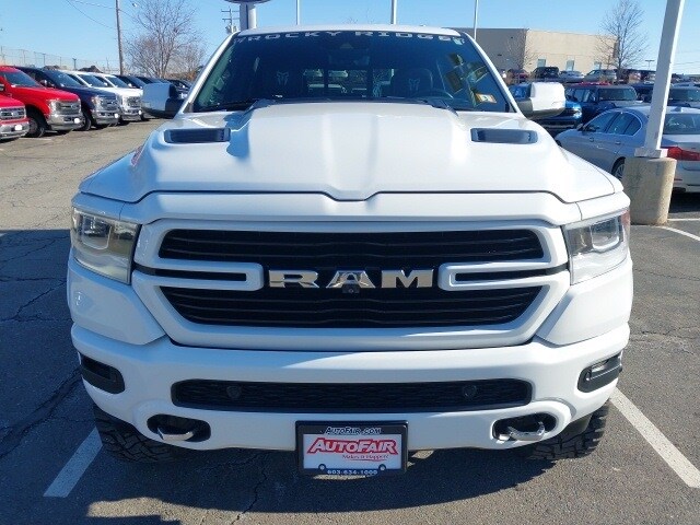 This 2021 Ram 1500 Laramie *Rocky Ridge Special Up-fit* in Bright White Clearcoat combines rugged capability with premium comfort and cutting-edge technology. Powered by a HEMI 5.7L V8 Multi-Displacement VVT engine and equipped with 4WD, this truck is built to handle both tough work and weekend adventures. A Clean CARFAX and recent arrival, it also comes with the AutoFair Certified Warranty for added peace of mind. Its exterior showcases a bold, muscular presence with body-color bumpers, off-road, and sport performance hood. The dual-pane panoramic sunroof adds a touch of refinement. The vehicle is equipped with the Uconnect 4C Nav system with 8.4" touchscreen, Harman/Kardon 19-speaker premium audio, heads-up display, rearview autodim digital mirror, and Apple CarPlay/Android Auto for seamless connectivity. Safety is prioritized with features like adaptive cruise control with stop & go, lane keep assist, blind spot and cross path detection, pedestrian emergency braking, and ParkSense front and rear park assist with stop, giving drivers confidence in every situation. Performance and capability are at the core of this Laramies design. The E-Locker rear axle, front and rear extra HD shock absorbers, hill descent control, and off-road group ensure it can tackle challenging terrain with ease, while the trailer brake control makes towing effortless.