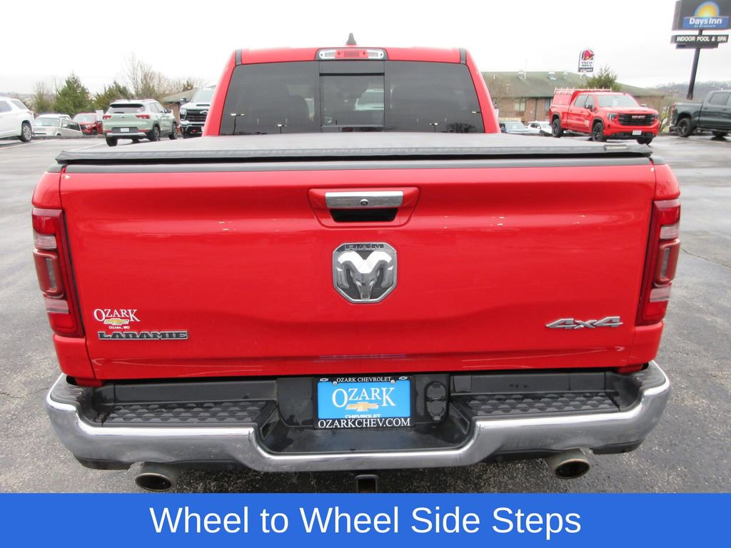 1500 Laramie, 4D Crew Cab, HEMI 5.7L V8 Multi Displacement VVT, 8-Speed Automatic, 4WD, Flame Red Clearcoat, Black Leather, Auto Dimming Exterior Passenger Mirror, Auto High Beam Headlamp Control, Blind Spot & Cross Path Detection, Bright Day Light Opening Moldings, Chrome Appearance Group, Chrome Tow Hooks, Foam Bottle Insert (Door Trim Panel), Laramie Level 1 Equipment Group (DISC), ParkSense Front/Rear Park Assist w/Stop, Rain Sensitive Windshield Wipers, Rear 60/40 Folding Split Recline Seat, Remote Tailgate Release, Tailgate Ajar Warning Lamp, Wheel to Wheel Side Steps. Chrome Appearance Group (Bright Day Light Opening Moldings, Chrome Tow Hooks, and Wheel to Wheel Side Steps), Laramie Level 1 Equipment Group (DISC) (Auto Dimming Exterior Passenger Mirror, Auto High Beam Headlamp Control, Blind Spot & Cross Path Detection, Foam Bottle Insert (Door Trim Panel), ParkSense Front/Rear Park Assist w/Stop, Rain Sensitive Windshield Wipers, Rear 60/40 Folding Split Recline Seat, Remote Tailgate Release, and Tailgate.