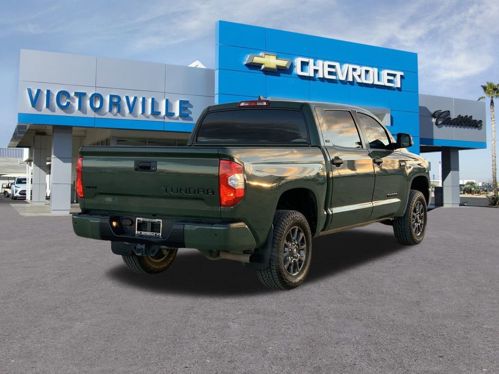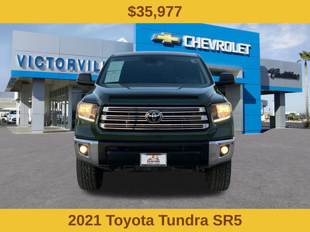 Army Green 2021 Toyota Tundra SR5 4WD 6-Speed Automatic Electronic i-Force 5.7L V8 DOHC 32V LEV Tundra SR5, 4D CrewMax, i-Force 5.7L V8 DOHC 32V LEV, 4WD, Army Green, Black Cloth. Why Buy from Victorville Chevrolet? We have received Chevrolet’s Dealer of the Year award multiple years in a row. Been voted locally Best of the Desert by the Daily Press. We are the highest volume selling dealership in the high desert and treat you like family. At Victorville Chevrolet, we do things differently. Our team is built around accuracy, honesty, and accountability from your first interaction to the moment you drive home. We provide: Verified availability checked by real managers Transparent, upfront pricing with no hidden fees A relaxed, zero-pressure experience Fast, consistent communication Access to inventory across Southern California if we don’t have your exact match A better Chevy experience starts right here at Victorville Chevrolet.
