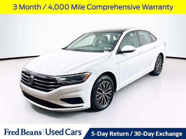 Discover the perfect balance of style, efficiency, and convenience with this stunning 2021 Volkswagen Jetta 1.4T SE. Boasting a sleek white exterior and a well-appointed interior, this Jetta is ready to elevate your driving experience.Highlighted by a suite of premium features, this Jetta offers unparalleled value. Key highlights include: Local trade-in with a clean Carfax history report. 3-month/4,000-mile comprehensive warranty. SE Cold Weather Package with heated seats, steering wheel, and more. Panoramic sunroof for an open and airy cabin. Remote engine start for added convenience. Under the hood, the 1.4L turbocharged engine delivers an impressive 29 city/39 highway MPG, ensuring you can go further on every tank. Paired with the smooth-shifting 8-speed automatic transmission, this Jetta provides a dynamic and efficient driving experience. This Jetta is also Ford Blue Advantage Certified, meaning it has undergone a rigorous multi-point inspection and comes with the peace of mind of a manufacturer-backed warranty. You can trust that this vehicle has been meticulously cared for and is ready to provide you with years of reliable service. Stepping inside, you'll be greeted by the refined V-Tex leatherette seating surfaces, which offer both style and comfort. The Composition Color infotainment system with a 6.5-inch touchscreen keeps you connected and entertained on the go, while the rearview camera and remote keyless entry add to the convenience. Whether you're commuting, running errands, or embarking on a road trip, this 2021 Volkswagen Jetta 1.4T SE is the perfect companion. With its impressive blend of features, efficiency, and certification, it's an opportunity you won't want to miss. Visit our showroom today to experience this exceptional vehicle firsthand and see how it can enhance your driving lifestyle.