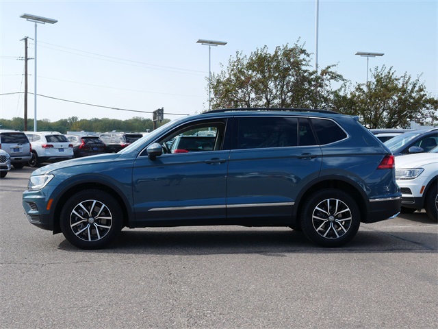 Certified. AWD, all wheel drive, Apple Car Play, Android Auto, rearview camera system, Bluetooth, heated seats, moonroof, sunroof, panoramic moon roof, 3rd row seating, backup camera, remote start. Stone Blue Metallic 2021 Volkswagen Tiguan 2.0T SE AWD 2.0L TSI DOHC 8-Speed Automatic with Tiptronic. Odometer is 10565 miles below market average! 21/27 City/Highway MPG. Our Promise to You: At Volkswagen of Inver Grove, we use third party software daily to compare our vehicle pricing to all other dealer and private party listings on the internet in the greater Minneapolis St. Paul Market area. We will post one low price, plain and simple-always. At Volkswagen of Inver Grove you get a great valued priced vehicle right up front! Additionally, we recondition our vehicles to the highest standards. We are committed to making your car buying experience easy and earning your business for life! Please call us or email us to schedule a test drive today! We sell and service all makes and models of pre-owned, used vehicles, used cars, used trucks, used sport utility as well as other brands.
