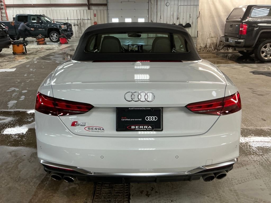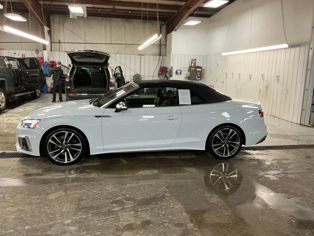 Recent Arrival! Certified. 2022 Audi S5 3.0T Premium Plus quattro quattro 2D Convertible 3.0L TFSI Glacier White Metallic/Black Roof Carfax One-Owner. 21/28 City/Highway MPG Audi Active Lane Assist, Audi Adaptive Cruise Control w/Traffic Jam Assist, Audi Connect PRIME & PLUS, Audi Phone Box, Audi S Beam - Front Doors Only, Audi Virtual Cockpit Plus, Bang & Olufsen Sound System w/3D Sound, Convenience Package, Hands-On Detection Steering Wheel, Leatherette Covered Center Console & Door Armrests, MMI Navigation Plus, Navigation Package, Power Folding Exterior Mirrors, Premium Plus Package, Top View Camera System. Audi Certified pre-owned Details: Certified pre-owned Limited Warranty: For all CPO sales on or after 8/1/23, if New Vehicle Limited Warranty (NVLW) coverage remains at time of CPO purchase, CPO Limited Warranty Coverage commences upon expiration of NVLW and continues for a period of 1 year or 20,000 miles, whichever occurs first. If NVLW coverage has expired at time of CPO purchase, CPO Limited Warranty coverage commences at time of purchase and continues for 1 year or 20,000 miles, whichever occurs first. Roadside Assistance for 1 year with unlimited miles, whichever occurs first. Effective 8/1/23 onward, private party transfers no longer accepted, eligible for previous CPO customers with sale dates prior to 8/1/23 to utilize if they so choose. 125+ Point Inspection. This vehicle also includes our 7 POINT ASSURANCE PACKAGE which consists of Market Base Pricing, Auto-Biography from Carfax, Full Tank of Gas, Price Protection Guarantee and Exclusive 7-day Exchange.