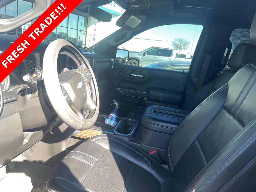 Recent Arrival! Certified. Recent Trade, Bluetooth® Hand Free Cell Phone, Back Up Camera, 4 Wheel Drive, Silverado 1500 LTD High Country, 4D Crew Cab, 4WD, 10-Way Power Driver Seat w/Lumbar, 10-Way Power Passenger Seat Adjuster w/Lumbar, 12-Volt Rear Auxiliary Power Outlet, 120-Volt Bed Mounted Power Outlet, 120-Volt Instrument Panel Power Outlet, 15 Diagonal Multicolor Head-Up Display, 2nd Row Heated Outboard Seats, 8 Driver Information Center, ABS brakes, Adaptive Cruise Control, Advanced Trailering System, All-Weather Floor Liner (LPO), Apple CarPlay/Android Auto, Auto-Dimming Inside Rear-View Mirror, Auto-Locking Rear Differential, Automatic Emergency Braking, Auxiliary External Transmission Oil Cooler, Bed View Camera, Bluetooth® For Phone, Body-Color Painted Mirror Caps, Chevrolet Connected Access Capable, Chevytec Spray-On Black Bedliner, Chrome Assist Steps, Chrome Grille, Chrome Recovery Hooks, Color-Keyed Carpeting Floor Covering, Compass, Deep-Tinted Glass, Driver Memory, Dual Exhaust w/Polished Outlets, Dual front side impact airbags, Electric Rear-Window Defogger, Electronic Cruise Control, Electronic Stability Control, Floor Mounted Center Console, Following Distance Indicator, Forward Collision Alert, Front Carpeted Floor Mats, Front dual zone A/C, Front LED Fog Lamps, Front Pedestrian Braking, Garage door transmitter, HD Rear Vision Camera, HD Surround Vision w/2 Trailer View Camera Provisions, Heated Driver & Front Outboard Passenger Seats, Heated Steering Wheel, High Country Deluxe, Hitch Guidance, Hitch Guidance w/Hitch View, Integrated Trailer Brake Controller, IntelliBeam Automatic High Beam On/Off, Keyless Open & Start, Lane Change Alert w/Side Blind Zone Alert, Lane Keep Assist w/Lane Departure Warning, Leather Wrapped Steering Wheel, LED Cargo Area Lighting, Manual Tilt/Telescoping Steering Column, Navigation System, OnStar & Chevrolet Connected Services Capable, Outside Heated Power-Adjustable Mirrors, Power Door Locks, Power Front Passenger Windows w/Express Up/Down, Power Front Windows w/Driver Express Up/Down, Power Rear Windows w/Express Down, Power Sliding Rear Window w/Rear Defogger, Power Sunroof, Preferred Equipment Group 3LZ, Rear Camera Mirror, Rear Carpeted Floor Mats, Rear Cross Traffic Alert, Rear Dual USB Charging-Only Ports, Rear Wheelhouse Liners, Remote Vehicle Starter System, Safety Alert Seat, Safety Package II, Standard Tailgate, Steering Wheel Audio Controls, Technology Package, Telescoping steering wheel, Theft Deterrent System (Unauthorized Entry), Traction control, Trailering Package.