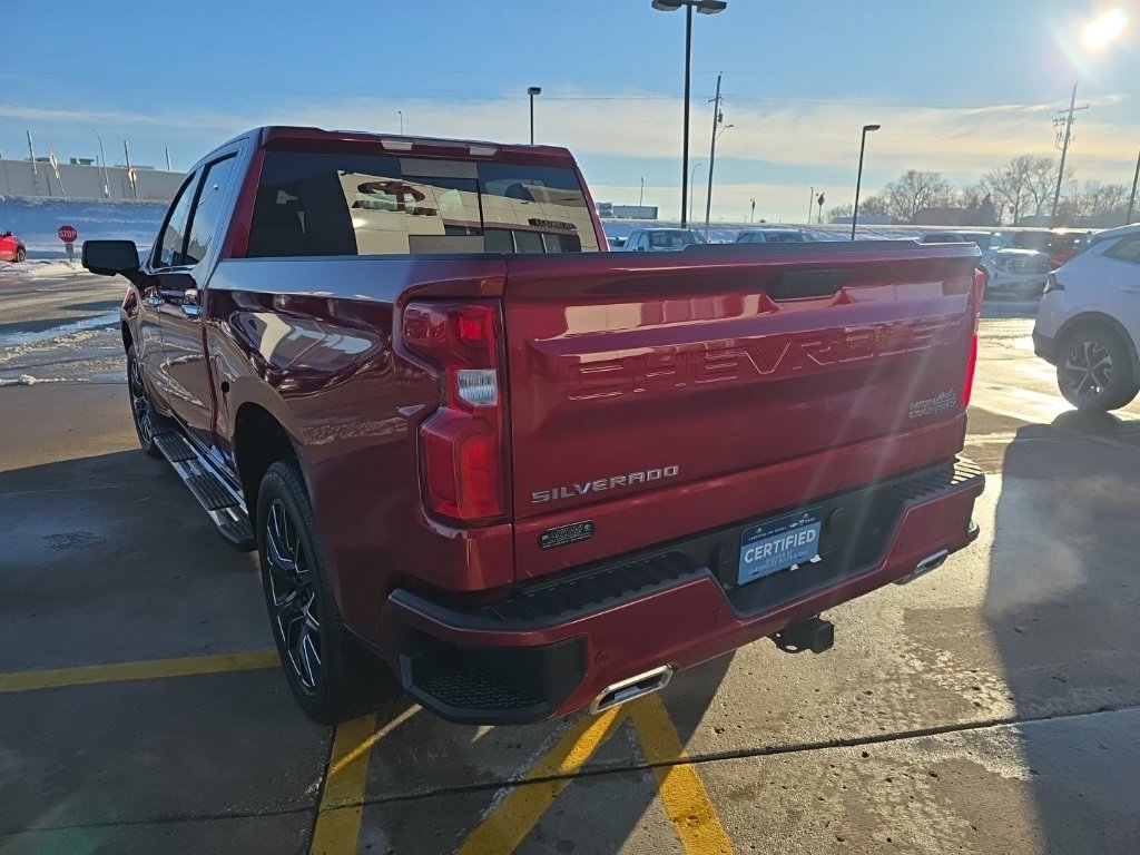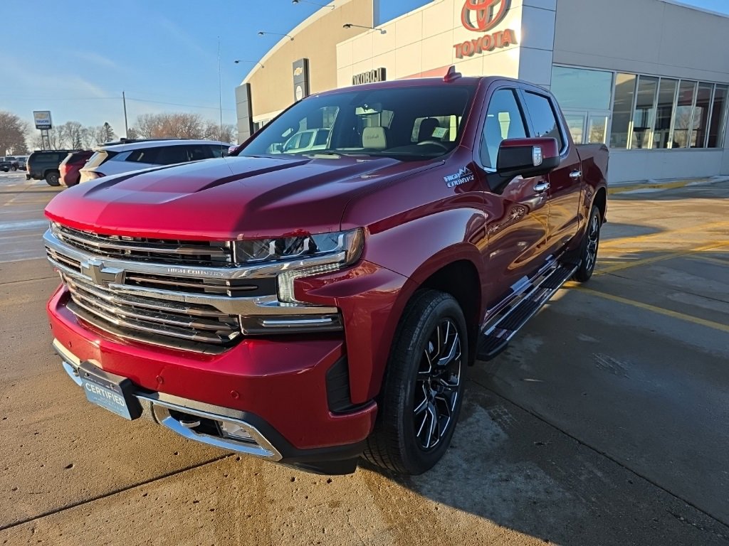 Certified. Cherry Red Tintcoat 2022 Chevrolet Silverado 1500 LTD High Country 4WD 10-Speed Automatic EcoTec3 5.3L V8 Silverado 1500 LTD High Country, 4D Crew Cab, EcoTec3 5.3L V8, 4WD, 10-Way Power Driver Seat w/Lumbar, 10-Way Power Passenger Seat Adjuster w/Lumbar, 12-Volt Rear Auxiliary Power Outlet, 120-Volt Bed Mounted Power Outlet, 120-Volt Instrument Panel Power Outlet, 2nd Row Heated Outboard Seats, 8 Driver Information Center, Advanced Trailering System, Apple CarPlay/Android Auto, Auto-Dimming Inside Rear-View Mirror, Auto-Locking Rear Differential, Auxiliary External Transmission Oil Cooler, Bluetooth For Phone, Body-Color Painted Mirror Caps, Chevrolet Connected Access Capable, Chevytec Spray-On Black Bedliner, Chrome Assist Steps, Chrome Grille, Chrome Recovery Hooks, Color-Keyed Carpeting Floor Covering, Compass, Deep-Tinted Glass, Driver Memory, Dual Exhaust w/Polished Outlets, Electric Rear-Window Defogger, Electronic Cruise Control, Floor Mounted Center Console, Front Carpeted Floor Mats, Front LED Fog Lamps, HD Rear Vision Camera, Heated Driver & Front Outboard Passenger Seats, Heated Steering Wheel, Hitch Guidance, Hitch Guidance w/Hitch View, Integrated Trailer Brake Controller, Keyless Open & Start, Lane Change Alert w/Side Blind Zone Alert, Leather Wrapped Steering Wheel, LED Cargo Area Lighting, Manual Tilt/Telescoping Steering Column, Navigation System, OnStar & Chevrolet Connected Services Capable, Outside Heated Power-Adjustable Mirrors, Power Door Locks, Power Front Passenger Windows w/Express Up/Down, Power Front Windows w/Driver Express Up/Down, Power Rear Windows w/Express Down, Power Sliding Rear Window w/Rear Defogger, Power Tailgate, Preferred Equipment Group 3LZ, Rear Carpeted Floor Mats, Rear Cross Traffic Alert, Rear Dual USB Charging-Only Ports, Rear Wheelhouse Liners, Remote Vehicle Starter System, Standard Tailgate, Steering Wheel Audio Controls, Theft Deterrent System (Unauthorized Entry), Trailering Package, Ultrasonic Front & Rear Park Assist, Universal Home Remote, Up-Level Rear Seat w/Storage Package, Ventilated Driver & Front Passenger Seats, Wi-Fi Hot Spot Capable, Wireless Charging.