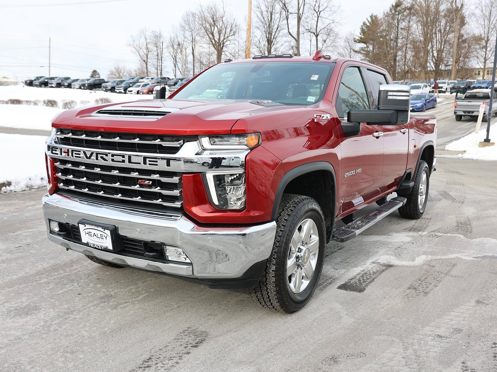 Cherry Red Tintcoat 2022 Chevrolet Silverado 2500HD LTZ 4WD 6-Speed Automatic 6.6L V8. This truck is in excellent condition and has been well maintained. It features a powerful V8 engine, a comfortable and clean interior with leather-appointed seats, and a range of advanced safety and technology features. The Silverado 2500HD is a heavy-duty truck designed for towing and work, but it also offers a smooth ride and modern amenities for daily driving or long trips.