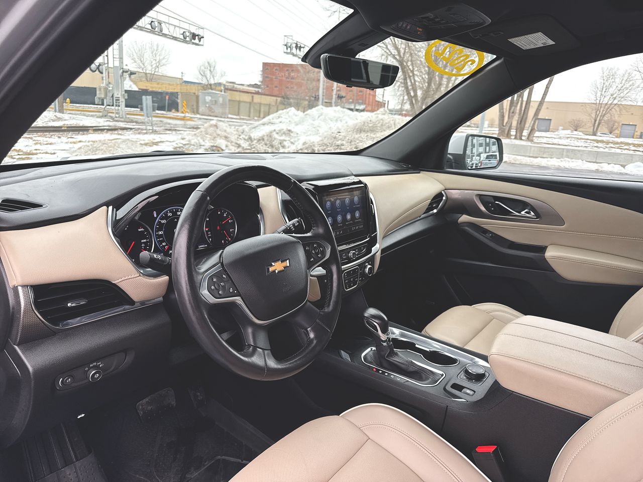 The 2022 Chevrolet Traverse Premier All Wheel Drive SUV offers a smooth ride and optimum handling, with a 3.6L V6 engine and all-wheel drive system. It features a spacious interior with heated and ventilated seats, leather-appointed seating, and advanced technology including navigation and a premium Bose audio system. The vehicle is designed for comfort and safety, with features like tri-zone automatic climate control, rear camera mirror, and enhanced automatic emergency braking.