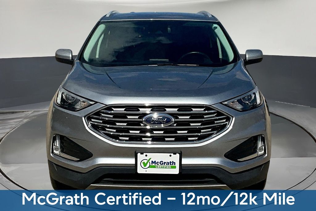 Discover the perfect blend of style, performance, and convenience in the 2022 Ford Edge SEL. This exceptional SUV is packed with a host of premium features that elevate your driving experience to new heights. Powered by the responsive EcoBoost 2.0L I4 GTDi DOHC Turbocharged VCT engine, the 2022 Ford Edge SEL delivers an exhilarating driving experience with its 8-Speed Automatic transmission and All-Wheel Drive capability. Enjoy impressive fuel efficiency, with an EPA-estimated 21 MPG in the city and 28 MPG on the highway. This meticulously maintained Edge SEL boasts a sleek Silver exterior, complemented by a wealth of premium features that elevate your daily commute. From the convenience of the Power Liftgate and Wireless Charging Pad to the advanced SYNC 4A infotainment system, every detail has been thoughtfully designed to enhance your driving pleasure. Indulge in the comfort of heated front seats, while the ActiveX Seating Material adds a touch of sophisticated style. The Power Driver's Seat and Power Passenger Seat ensure you and your co-pilot can find the perfect position for maximum comfort. As a McGrath Certified pre-owned vehicle, this 2022 Ford Edge SEL has undergone a rigorous inspection and comes with a 12-month/12,000-mile limited warranty, giving you the peace of mind you deserve. With its exceptional features, powerful performance, and certified status, this Edge SEL is the perfect choice for the discerning driver.