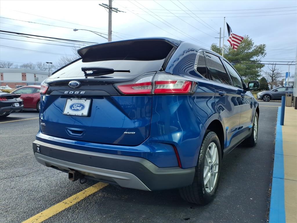 Clean CARFAX. CARFAX One-Owner. Atlas Blue Metallic 2022 Ford Edge SEL AWD 8-Speed Automatic EcoBoost 2.0L I4 GTDi DOHC Turbocharged VCT 21/28 City/Highway MPG AWD.