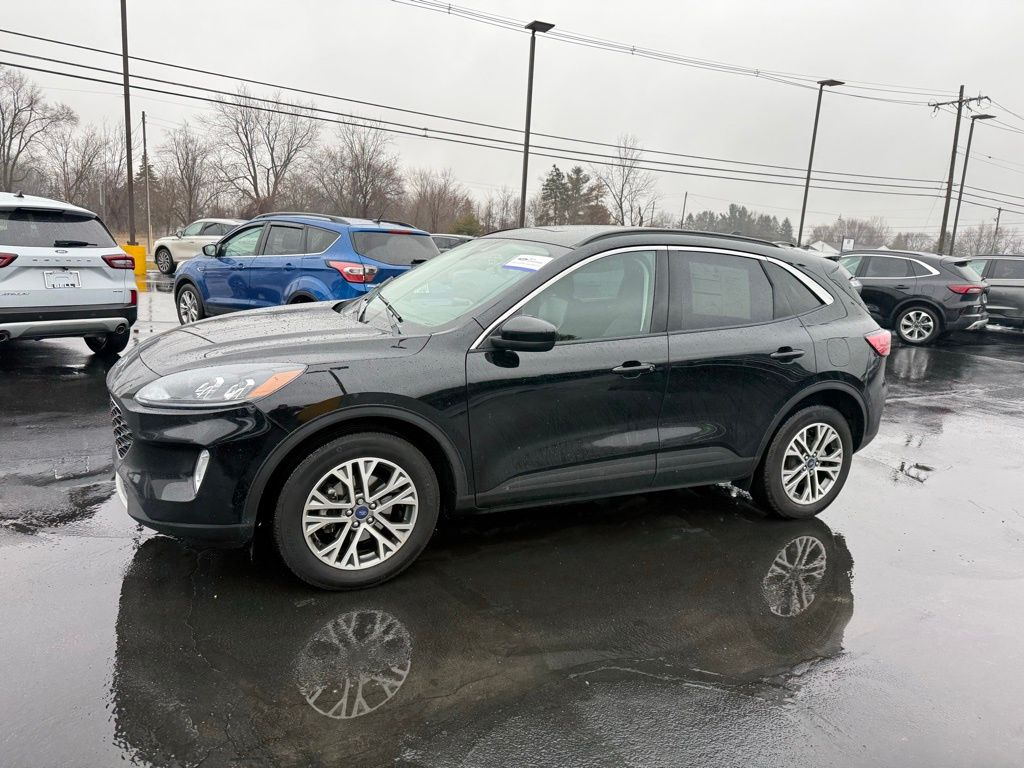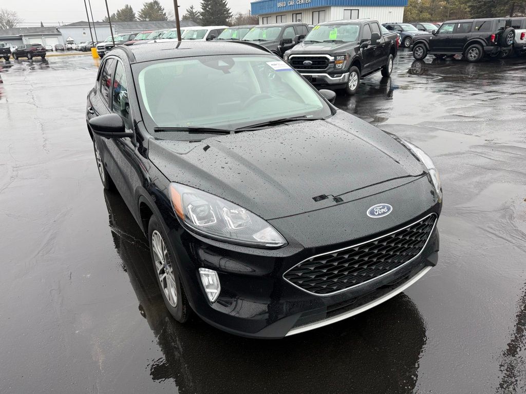 Certified. Agate Black Metallic 2022 Ford Escape SEL AWD 8-Speed Automatic 1.5L EcoBoost. Recent Arrival! Odometer is 19582 miles below market average! 26/31 City/Highway MPG. Ford Blue Certified Certified, AWD, 18" Machined-Face Aluminum Wheels, 4-Wheel Disc Brakes, 4G LTE Wi-Fi Hotspot Removal, 6 Speakers, ABS brakes, Air Conditioning, Alloy wheels, AM/FM radio: SiriusXM, AM/FM Stereo, Auto High-beam Headlights, Automatic temperature control, Black Roof Rack Rails, Brake assist, Bumpers: body-color, Compass, Delay-off headlights, Driver door bin, Driver vanity mirror, Dual front impact airbags, Dual front side impact airbags, Electronic Stability Control, Emergency communication system: SYNC 3 911 Assist, Equipment Group 301A, Exterior Parking Camera Rear, FordPass Connect, Four wheel independent suspension, Front & Rear Floor Liners w/o Carpet Mats, Front anti-roll bar, Front Bucket Seats, Front Center Armrest, Front dual zone A/C, Front fog lights, Front reading lights, Fully automatic headlights, Heated ActiveX Trimmed Front Sport Contour Bucket Seats, Heated door mirrors, Heated front seats, Heated steering wheel, Illuminated entry, Instrument Panel w/6.5" Digital Screen, Knee airbag, Low tire pressure warning, Occupant sensing airbag, Outside temperature display, Overhead airbag, Overhead console, Panic alarm, Passenger door bin, Passenger vanity mirror, Power door mirrors, Power driver seat, Power Liftgate, Power steering, Power windows, Radio data system, Rear anti-roll bar, Rear reading lights, Rear seat center armrest, Rear window defroster, Rear window wiper, Remote keyless entry, Speed control, Speed-sensing steering, Speed-Sensitive Wipers, Split folding rear seat, Spoiler, Steering wheel mounted audio controls, SYNC 3 Communications & Entertainment System, Tachometer, Telescoping steering wheel, Tilt steering wheel, Traction control, Trip computer computer.