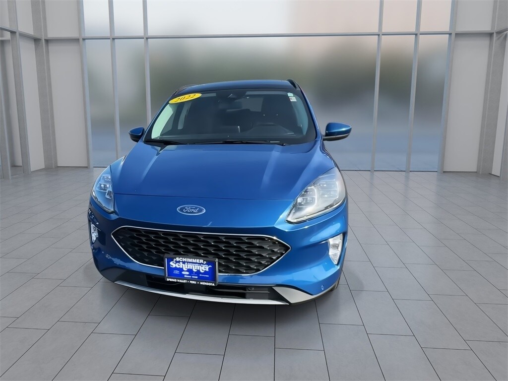 Used 2022 Ford Escape Titanium in stock at Schimmer Ford Lincoln Hyundai in Peru, Illinois. This used Escape comes in Atlas Blue Metallic with Ebony. Stock # T883201 and Vin # 1FMCU9J94NUA79025. EcoBoost 2.0L I4 GTDi DOHC Turbocharged VCT 8-Speed Automatic. Odometer is 10808 miles below market average! 22/31 City/Highway MPG. Ready to see this vehicle in person? Have more questions, or are we missing information? To schedule an appointment to test drive this vehicle, or to have missing information sent to you via e-mail or text message, please call us ask for Sales. Schimmer's has been in business since 1945 - That's over 70 Years of Better Service and Better Prices! We are highly rated in both sales and service, and have more 5 Star Reviews than any other dealer in the area! Located at 911 Shooting Park Road in Peru, Illinois.