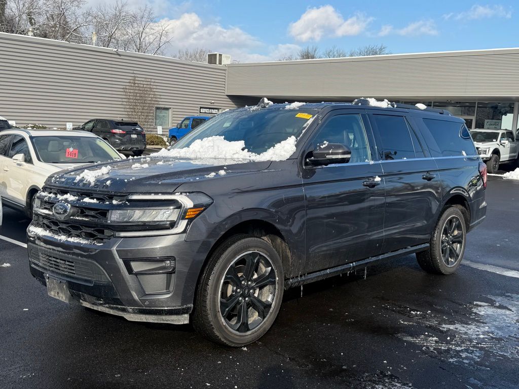 Discover the ultimate in power, capability, and style with this exceptional 2022 Ford Expedition Max Limited 4WD Stealth Edition Pkg. This stunning SUV is the perfect blend of rugged performance and refined luxury, ready to elevate your driving experience. Powered by the robust EcoBoost 3.5L V6 GTDi DOHC 24V Twin Turbocharged engine, this Expedition Max delivers exceptional power and efficiency, with an impressive 16 city / 22 highway MPG rating. The 10-speed automatic transmission and 4WD system ensure seamless, confident handling in any driving condition. Step inside and experience the epitome of luxury and technology. The Stealth Edition Package elevates the interior with premium features, including heated and ventilated leather front captain's chairs, a sport center console, and a stunning 15.5" LCD capacitive touchscreen with SYNC 4A and enhanced voice recognition. The available B&O Sound System by Bang & Olufsen will immerse you in a concert-quality audio experience. This Expedition Max is more than just a vehicle—it's a statement of refined capability. With its striking Stealth Edition styling, including the Ebony Black Twin Spar Grille, Black Roof Rack Side Rails, and 22" Premium Black-Painted Aluminum Wheels, this SUV commands attention wherever it goes. As a Ford Gold Certified pre-owned vehicle, this Expedition Max has undergone a rigorous 172-point inspection and comes with a comprehensive warranty, roadside assistance, and 22,000 FordPass Rewards Points to use toward your first two maintenance visits. You can buy with confidence, knowing that this SUV has been meticulously cared for and is ready to provide you with years of exceptional performance and reliability.