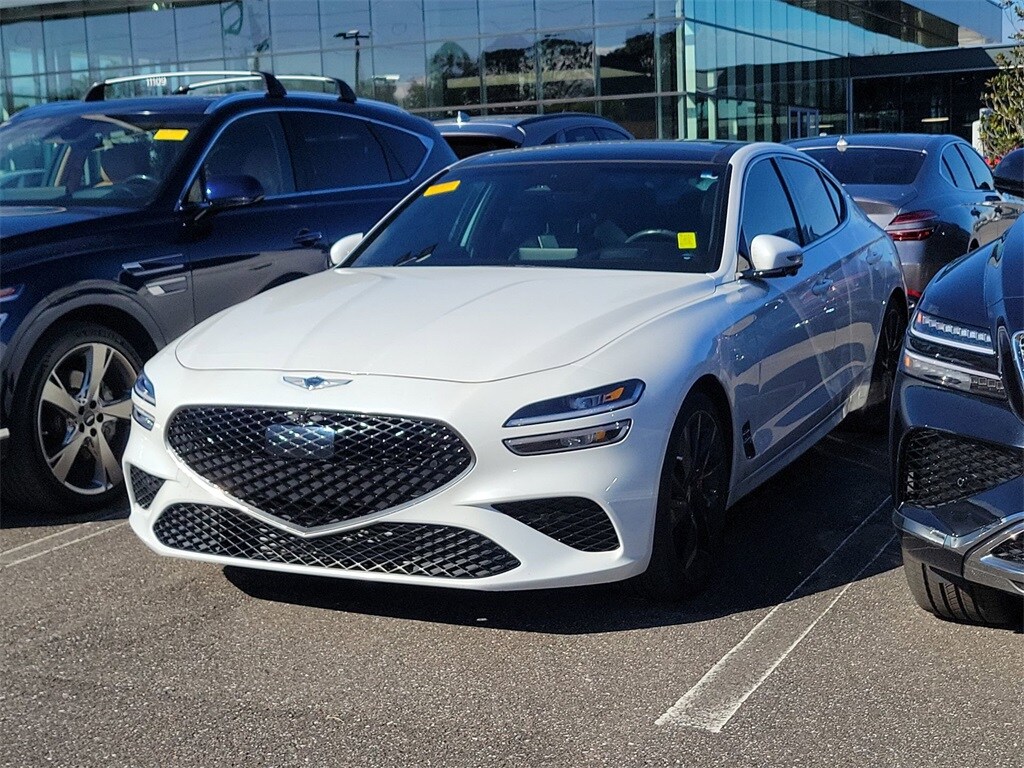 The price does not include tax, tag, license, an electronic filing fee of $449.00, a private tag agency fee of $199.00, and a predelivery service charge of $1199.00. EPA-estimate metric: these are contingent on ideal conditions within a lab. Real-world situations such as carrying passengers or cargo, using climate control, driving style, and ambient temperatures can affect actual metrics. 18/27 City/Highway MPG. Uyuni White 2022 Genesis G70 3.3T RWD 8-Speed Automatic V6.