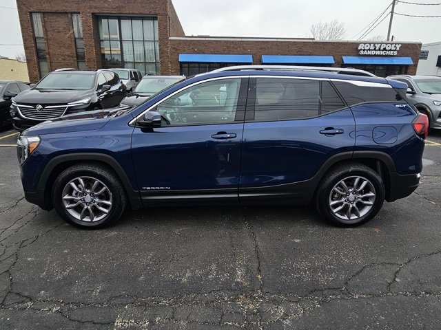Recent Arrival! Accident free Carfax, certified, non-smoker, local trade in, remote start, new tires, Android Auto / Apple CarPlay, heated seats, balance of factory warranty, panoramic roof, heated steering wheel, Adaptive Cruise Control, GMC Pro Safety Plus, Lane Change Alert with Side Blind Zone Alert, Rear Cross-Traffic Alert, Rear Park Assist, Safety Alert Seat. Certified. Marine Metallic 2022 GMC Terrain SLT FWD 9-Speed Automatic 1.5L DOHC. Odometer is 5676 miles below market average! 25/30 City/Highway MPG. GMC Certified Pre-Owned Details: Roadside Assistance, Powertrain Limited Warranty: 72 Month/100,000 Mile (whichever comes first) from original in-service date, Warranty Deductible: $0, Transferable Warranty, 172 Point Inspection, 24 months/24,000 miles (whichever comes first) Certified Pre-Owned Scheduled Maintenance Plan and 3 days/150 miles (whichever comes first) Vehicle Exchange Program. SiriusXM 3-month trial subscription. Limited Warranty: 12 Month/12,000 Mile (whichever comes first) from certified purchase date. Vehicle History. This vehicle is available for test drive most days, but to confirm availability please call us at (440)238-5600. For most recently updated pricing and to view other vehicles in our inventory please visit our website. www.GanleyBuickGMC.com Our family run dealership offers a friendly, inviting atmosphere with a staff equipped to helpfully guide you through your vehicle purchase.