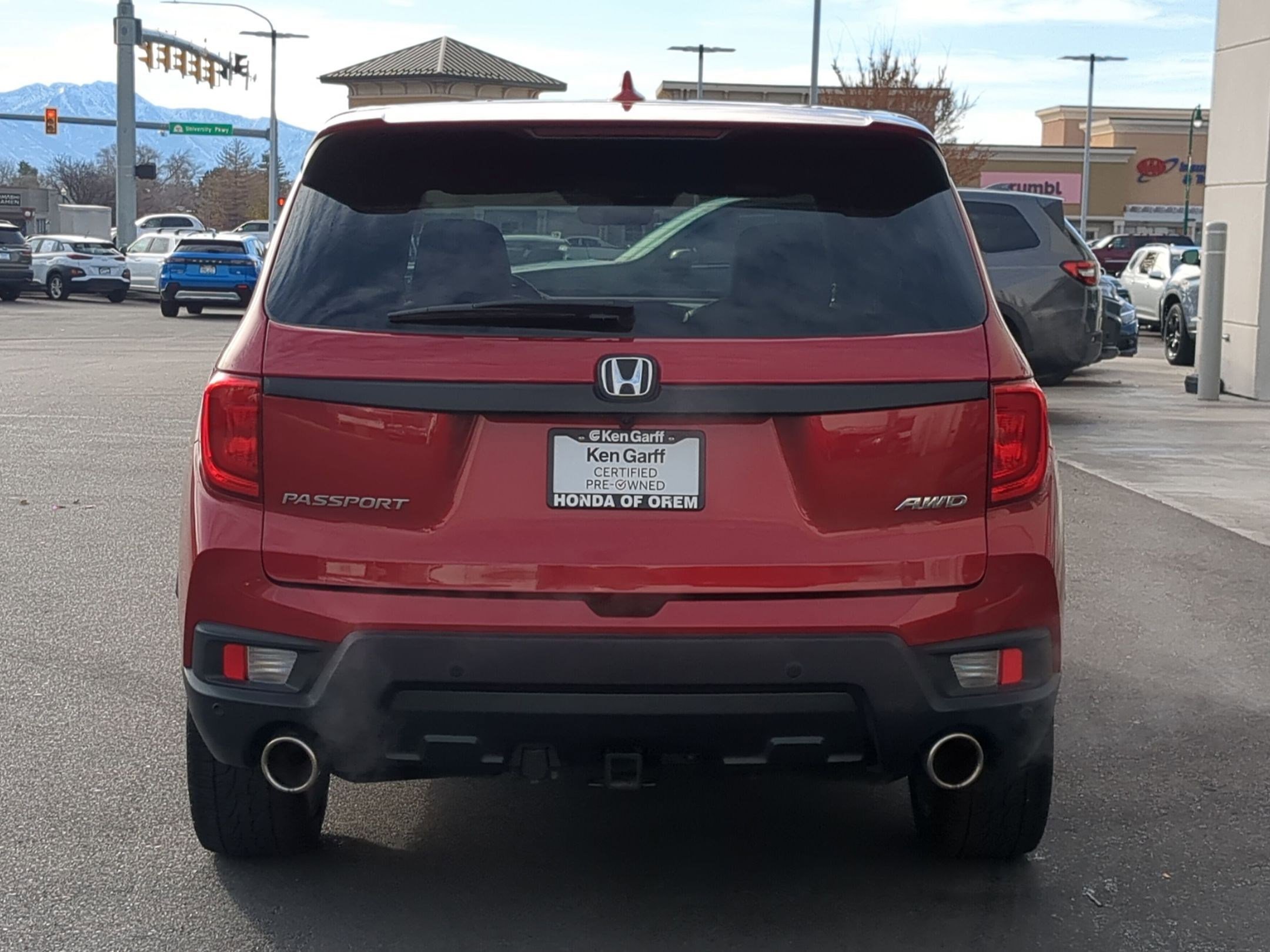 Ken Garff Honda is very proud to offer this fantastic 2022 Honda Passport EX-L in Radiant Red Metallic II. Garff Certified Pre-Owned Certified, 4-Wheel Disc Brakes, 4.334 Axle Ratio, 7 Speakers, A/V remote: CabinControl, ABS brakes, Air Conditioning, Alloy wheels, AM/FM radio: SiriusXM, Apple CarPlay/Android Auto, Auto High-beam Headlights, Auto-dimming Rear-View mirror, Automatic temperature control, Blind Spot Information (BSI) System warning, Brake assist, Bumpers: body-color, Delay-off headlights, Driver door bin, Driver vanity mirror, Driver's Seat Mounted Armrest, Dual front impact airbags, Dual front side impact airbags, Electronic Stability Control, Emergency communication system: HondaLink Assist, Exterior Parking Camera Rear, Forward collision: Collision Mitigation Braking System (CMBS) + FCW mitigation, Four wheel independent suspension, Front anti-roll bar, Front Bucket Seats, Front Center Armrest, Front dual zone A/C, Front reading lights, Fully automatic headlights, Garage door transmitter: HomeLink, Heated door mirrors, Heated Front Bucket Seats, Heated front seats, Illuminated entry, Lane departure: Lane Keeping Assist System (LKAS) active, Leather-Trimmed Seats, Low tire pressure warning, Memory seat, Occupant sensing airbag, Outside temperature display, Overhead airbag, Overhead console, Panic alarm, Passenger door bin, Passenger seat mounted armrest, Passenger vanity mirror, Power door mirrors, Power driver seat, Power Liftgate, Power moonroof, Power passenger seat, Power steering, Power windows, Radio data system, Radio: 215-Watt Audio System w/7 Speakers, Rear air conditioning, Rear anti-roll bar, Rear reading lights, Rear seat center armrest, Rear window defroster, Rear window wiper, Remote keyless entry, Security system, Speed control, Speed-sensing steering, Split folding rear seat, Spoiler, Steering wheel mounted audio controls, Tachometer, Telescoping steering wheel, Tilt steering wheel, Traction control, Trip computer, Turn signal indicator mirrors, Variably intermittent wipers, Wheels: 20 Pewter Gray Alloy. Certification Program Details: 118 point vehicle inspection 3 month / 3,000 miles comprehensive limited warranty with a $0 deductible Complementary vehicle history report GarffCARE roadside assistance Powertrain extending additives: Engine deposit cleaning additive Transmission conditioning additive Fuel system cleaner Cooling-system treatment Artic Blast A/C treatment Power steering fluid conditioner Second key and remote Free home delivery available No hassle return/exchange for 5-days or 500 miles. Awards: ALG Residual Value Awards Residual Value Awards. In addition to transparent no hassle pricing and upfront no hassle trade evaluation. We provide an enjoyably brief and easy Sales Experience. Your Pace. Your Deal. No Exceptions!