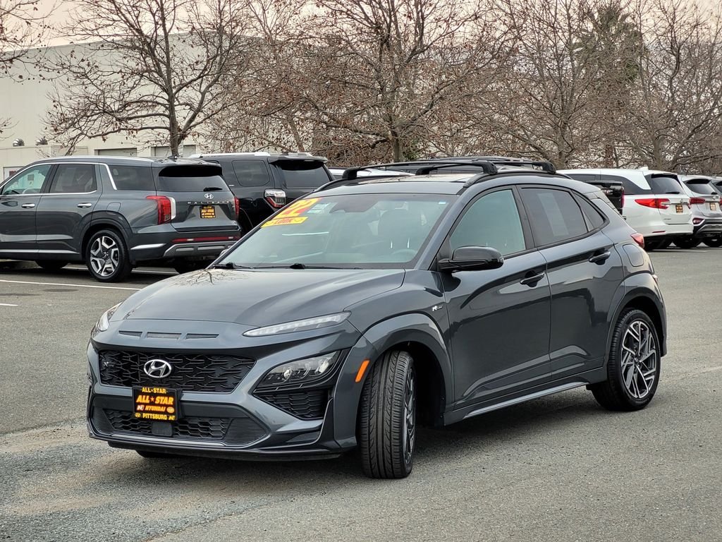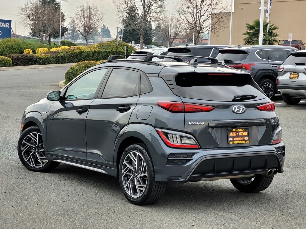 Quality used Cars, Trucks or SUVs for sale at All-Star Hyundai. Dealership serving Pittsburg, Walnut Creek, Brentwood, Antioch, Concord with used Hyundais, Toyota, Honda, Fords, and more. Call today! Certified. Passed Dealer 125 pt. Inspection. 27/32 City/Highway MPG Clean CARFAX. Thunder Gray 2022 Hyundai Kona N Line 4D Sport Utility AWD 7-Speed Automatic 1.6L I4 DGI Turbocharged DOHC 16V LEV3-ULEV70 195hp Hyundai Certified Used Vehicles Details: Limited Warranty: 60 Month/60,000 Mile (whichever comes first) from original in-service date. 173+ Point Inspection. Vehicle History. Includes 10-year/Unlimited Mileage Roadside Assistance with Rental Car and Trip Interruption Reimbursement; Please See Dealers for Specific Vehicle Eligibility Requirements. 10-Year/100,000 Mile Hybrid/EV Battery Warranty. 3-Months SiriusXM Trial Subscription. Complimentary 1 Year (Connected Care & Remote Pkgs). Powertrain Limited Warranty: 120 Month/100,000 Mile (whichever comes first) from original in-service date. Warranty Deductible: $50. Roadside Assistance.