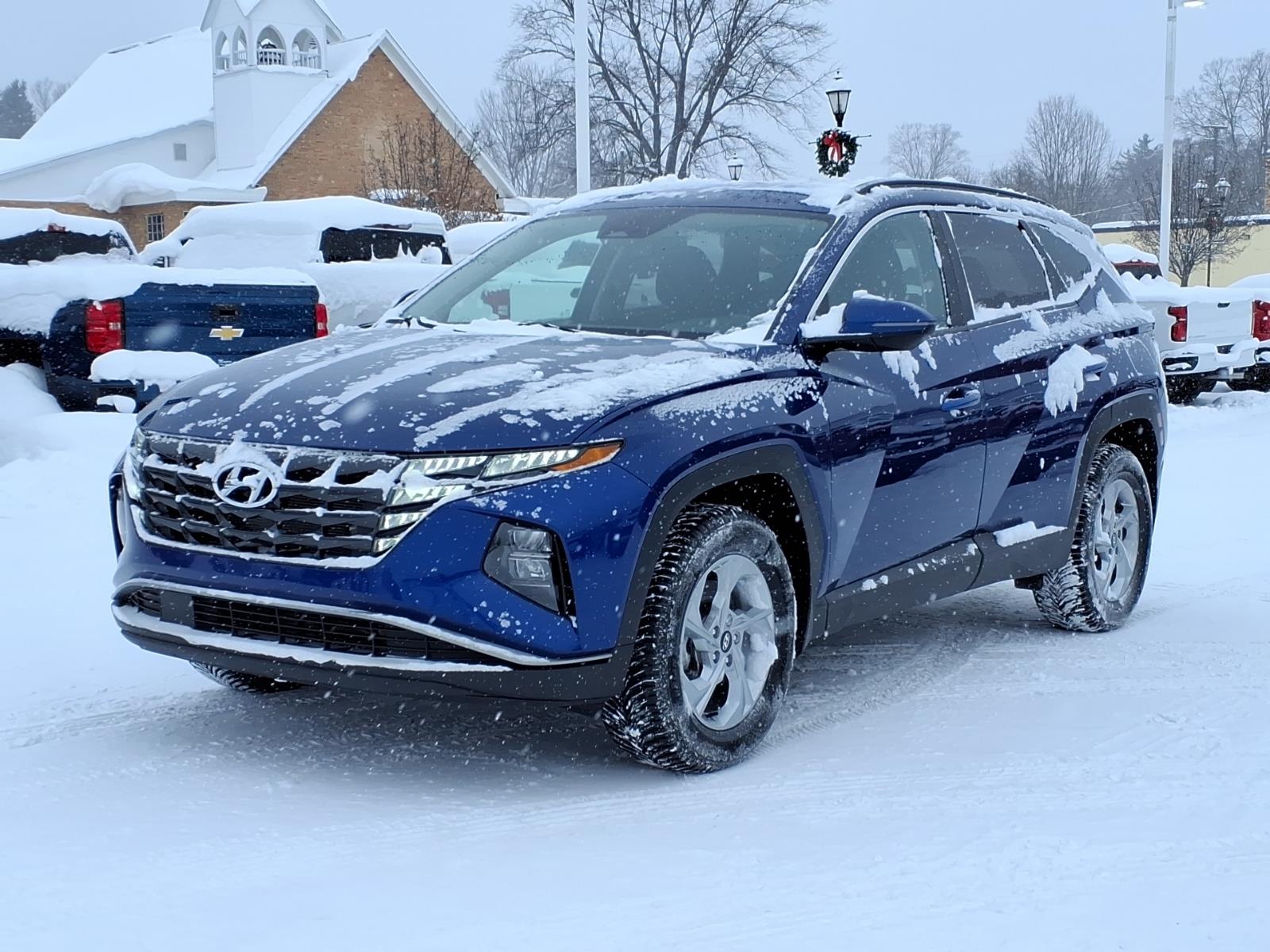 AWD. Clean Carfax. Intense Blue 2022 Hyundai Tucson SEL AWD 8-Speed Automatic with SHIFTRONIC 2.5L I4 DGI DOHC 16V LEV3-ULEV70 187hp. Family owned since 1937! 24/29 City/Highway MPG.