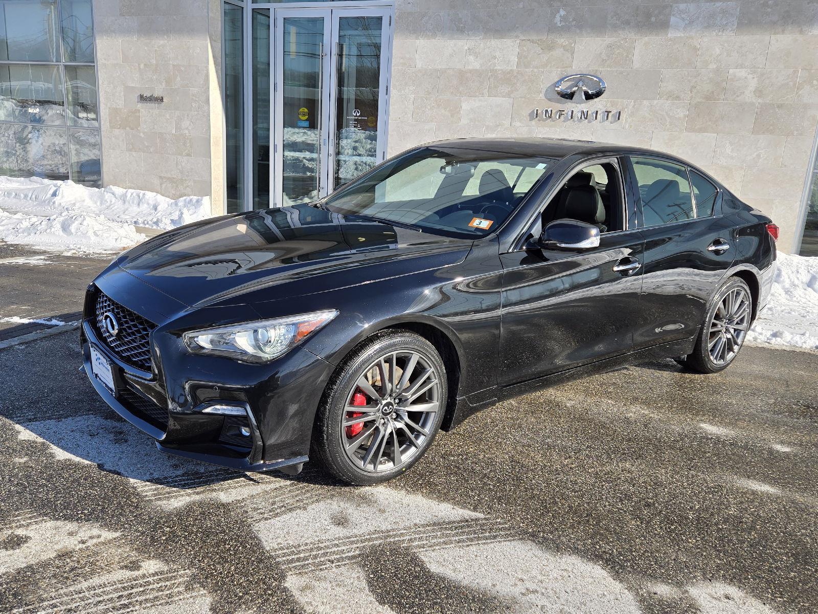 This 2022 INFINITI Q50 RED SPORT 400, has a Midnight Black exterior and a Graphite interior color. 29,395 miles. Stock Number P8934. You can connect with us by calling 844-278-1847. No Accidents! One Owner! At INFINITI of Nashua, we're here to Serve you! Our staff is 100% dedicated to customer satisfaction and we understand that you need clear, transparent information throughout the car buying process. With our live market pricing philosophy, we offer the right cars at the right price, and the transparency to back it up! With INFINITI of Nashua, you get more than a great vehicle. You get a dealership partner that always puts you first! Don't hesitate...pick up the phone now and call us at 844-278-1847 and speak with one of our friendly sales team members today!