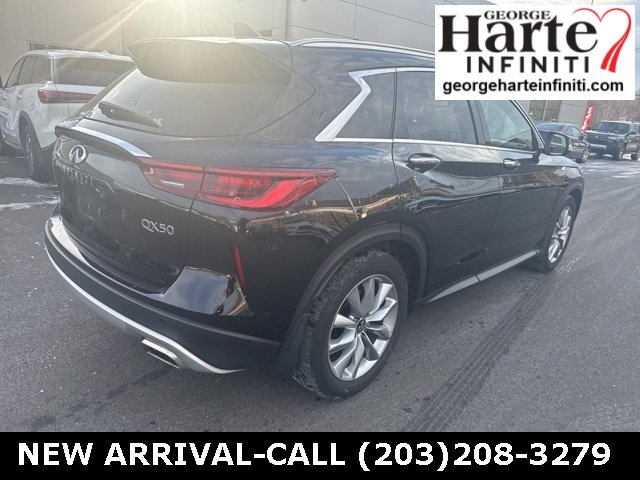 This 2022 INFINITI QX50 Essential AWD combines luxury, performance, and advanced technology in a sleek compact SUV design. Finished in Black Obsidian with a Graphite leather-appointed interior, this INFINITI Certified Pre-Owned QX50 is powered by a responsive turbocharged I4 engine paired with a CVT and Intelligent All-Wheel Drive, delivering confident handling and excellent efficiency. INFINITI Certified Pre-Owned Benefits include a 167-Point INFINITI Inspection, 72-Month / Unlimited-Mile Limited Warranty (from original in-service date), $0 Warranty Deductible, 1-Year Prepaid Maintenance Visit Included, 24/7 Roadside Assistance, and a Transferable Warranty. Why Buy From George Harte INFINITI? Proudly serving Connecticut drivers for over 60 years, George Harte INFINITI is known for transparent pricing, premium vehicles, and a first-class ownership experience.