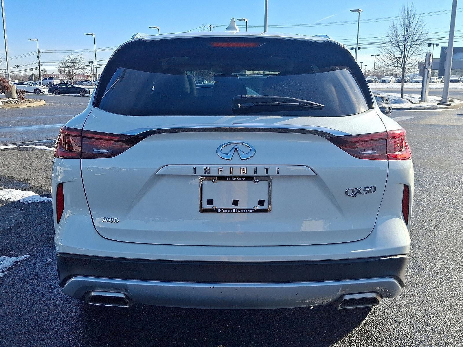 Recent Arrival! Certified. 2022 INFINITI QX50 LUXE AWD I4 Clean CARFAX. CARFAX One-Owner. Faulkner Maserati Faulkner Mechanicsburg. This vehicle is a Certified Pre-Owned vehicle, and is in excellent condition. Faulkner Maserati Mechanicsburg has a variety of options to purchase a vehicle! Not only can you stop in our location at 6720 Carlisle Pike, Mechanicsburg, PA 17050. We strive to give every customer a truly exceptional buying experience. We also offer a variety of options to purchase a vehicle! Not only can you stop in our location at 6720 Carlisle Pike, Mechanicsburg, PA 17050; but you can purchase your vehicle at home with home delivery offered!