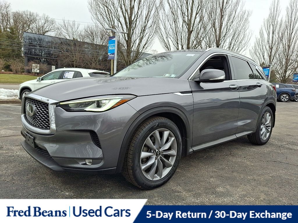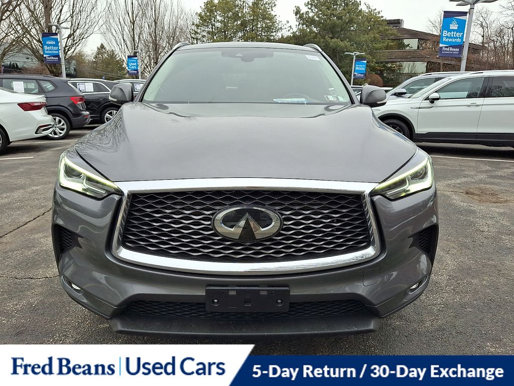 Recent Arrival! 2022 Infiniti QX50 LUXE I4 CVT AWD 4D Sport Utility Graphite Shadow. Great Service History, Triton Certified Vehicle, 7 Year / 100k Powertrain Warranty, 12 Month / 12,000 Mile Comprehensive Warranty, Remainder of Factory Warranty, Auto Reward Program. Clean CARFAX. Odometer is 9459 miles below market average! Certified. Certification Program Details: Triton Certified Shield • 7-Year or up to 100,000-Mile Powertrain Limited Warranty • 12-Month or 12,000-Mile Comprehensive Coverage ($100 deductible) • 100+ Multipoint Inspection • All Fluids Checked • Tires 6/32" or Better • 50% or Better brakes • Oil, Lube, & Filter Service Completed • PA State Inspection & Emissions Test • 5-Day Return Policy1 • 30-Day Exchange Policy2 • CARFAXTM Report • AutoRewards Membership • See salesperson for additional offers & complete details. For better peace of mind all our used vehicles have a 127-point inspection and come with a 5-day return, 30-day exchange (As-Is vehicles are excluded). Our exclusive Auto Rewards Program provides better value with $50 Service Gift Certificate, Free Pa State Safety inspections, discounts for local merchants and more. Plus, you can earn up to $2000 towards your next vehicle just by servicing with Fred Beans! As Fred Beans always says, our used cars are better because our reputation depends on it.