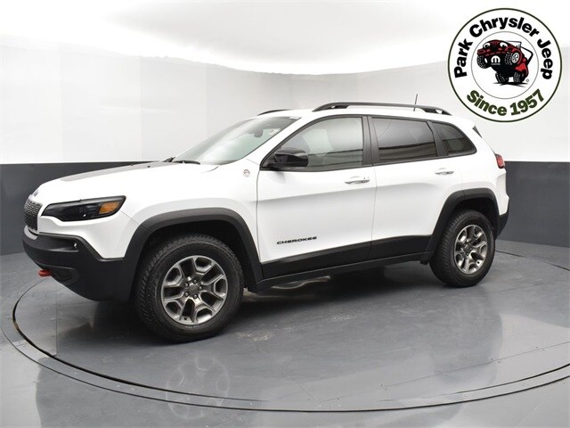 Buy our Accident Free, One Owner 2022 Jeep Cherokee Trailhawk 4X4, and bring your journeys to life in Bright White! Motivated by a 3.2 Liter V6 delivering 271hp paired to a 9 Speed Automatic transmission with an appetite for adventure. This rugged Four Wheel Drive SUV is fully Trail Rated, thanks to Selec-Terrain traction management and Active Drive II, and it scores nearly 24mpg on the highway. Our Cherokee even looks ready for off-road action with LED lighting, fog lamps, black accents, roof rails, skid plates, dual bright exhaust tips, off-road cladding/fender flares, and alloy wheels. Our Trailhawk cabin is as comfortable as it is capable, with heated premium-cloth front seats, eight-way power for the driver, bold red accent stitching, a heated premium-wrapped steering wheel, dual-zone automatic climate control, keyless access/ignition, and remote start. Thanks to Uconnect 4 technology, an 8.4-inch touchscreen, Apple CarPlay/Android Auto, Bluetooth, voice recognition, and a six-speaker sound system, you can stay in touch as you leave the road behind. Jeep adds modern safety measures to keep you out of harm's way, including a rearview camera, front/rear automatic braking, a blind-spot monitor, lane-keeping assistance, and more. Our Cherokee Trailhawk is a top choice for drivers just like you! Save this Page and Call for Availability. We Know You Will Enjoy Your Park Chrysler Jeep Used Test Drive Towards Ownership!