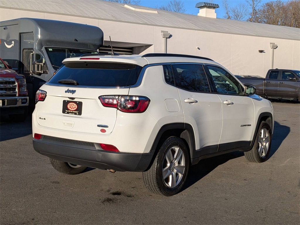 2022 Jeep Compass Latitude Certified. Bright White Clearcoat 4WD 2.4L I4 9-Speed 948TE Automatic CARFAX One-Owner. 4WD. FCA US LLC Certified Pre-Owned Details: Powertrain Limited Warranty: 84 Month/100,000 Mile (whichever comes first) from original in-service date. Transferable Warranty. Warranty Deductible: $100. Limited Warranty: 3 Month/3,000 Mile (whichever comes first) after new car warranty expires or from certified purchase date. Vehicles Up to 75,000 Miles and/or 5 Model Years. 24-Hour Towing & Roadside Assistance, Car Rental Allowance, CARFAX Vehicle History Report and an Introductory 3-month Subscription to SiriusXM Satellite Radio & Certified Warranty Upgrades. Vehicle History. Roadside Assistance. 125 Point Inspection. Specifications, features, safety and warranty data are based on what is available as standard specs/features per trim level, for the designated model-year, and may not apply to vehicles with added packages or options. See dealer for written warranty information. Dealer makes no guarantees or warranties.