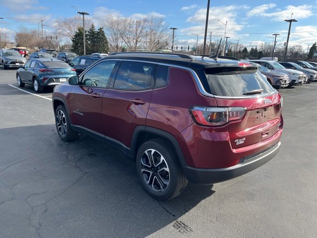 CarBravo Certified, 4WD, Leather Seats, Backup Camera, Remote Start, Pwr Dr Seat, Forward Collision Alert, Side Blind Zone Alert, Rear Cross Traffic Alert, Adaptive Cruise Control, Heated Seats, Heated Steering Wheel, Apple CarPlay, Aluminum Wheels, Carfax Buyback Guarantee, Compass Limited, 4D Sport Utility, 2.4L I4, 9-Speed 948TE Automatic, 4WD, Velvet Red Pearlcoat, Black w/Leather Trimmed Bucket Seats, 10.1 Touchscreen Display, 4-Wheel Disc Brakes, 6 Speakers, ABS brakes, Air Conditioning, AM/FM radio: SiriusXM, Anti-whiplash front head restraints, Auto High-beam Headlights, Auto-dimming Rear-View mirror, Automatic temperature control, Brake assist, Bumpers: body-color, Compass, Delay-off headlights, Disassociated Touchscreen Display, Driver door bin, Driver vanity mirror, Dual front impact airbags, Dual front side impact airbags, Electronic Stability Control, Emergency communication system: SiriusXM Guardian, Four wheel independent suspension, Front anti-roll bar, Front Bucket Seats, Front Center Armrest w/Storage, Front dual zone A/C, Front reading lights, Fully automatic headlights, Global Telematics Box Module (TBM), Gloss Black Exterior Mirrors, Heated door mirrors, Heated front seats, Heated steering wheel, Illuminated entry, Knee airbag, Leather Shift Knob, Leather Trimmed Bucket Seats, Low tire pressure warning, Occupant sensing airbag, Outside temperature display, Overhead airbag, Overhead console, ParkView Rear Back-Up Camera, Passenger door bin, Passenger vanity mirror, Power door mirrors, Power driver seat, Quick Order Package 2GG, Radio: Uconnect 5 w/10.1 Display, Rain sensing wipers, Rear anti-roll bar, Rear seat center armrest, Rear window defroster, Rear window wiper, Remote keyless entry, Security system, Speed control, Split folding rear seat, Spoiler, Steering wheel mounted audio controls, Tachometer, Telescoping steering wheel, Tilt steering wheel, Traction control, Trip computer, Turn signal indicator mirrors, Variably intermittent wipers, Wheels: 18 x 7 Painted Diamond Cut Aluminum. 2022 Jeep Compass Velvet Red Pearlcoat Limited 4D Sport Utility 4WD 9-Speed 948TE Automatic 22/30 City/Highway MPG 2.4L I4.