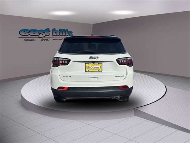 Recent Arrival! Carfax One-Owner. Clean Carfax. Certified. Bright White Clearcoat 2022 Jeep Compass Limited 2.4L I4 9-Speed 948TE Automatic 4WD 10.1" Touchscreen Display, 4-Wheel Disc Brakes, ABS brakes, Air Conditioning, Alloy wheels, AM/FM radio: SiriusXM, Anti-whiplash front head restraints, Auto High-beam Headlights, Auto-dimming Rear-View mirror, Automatic temperature control, Brake assist, Compass, Dual front impact airbags, Dual front side impact airbags, Electronic Stability Control, Emergency communication system: SiriusXM Guardian, Four wheel independent suspension, Front anti-roll bar, Front dual zone A/C, Front fog lights, Fully automatic headlights, Heated front seats, Heated steering wheel, Knee airbag, Leather Shift Knob, Leather Trimmed Bucket Seats, Low tire pressure warning, Occupant sensing airbag, Outside temperature display, Overhead airbag, ParkView Rear Back-Up Camera, Power driver seat, Power Front/Fixed Rear Full Sunroof, Power steering, Power windows, Premium Alpine Speaker System, Quick Order Package 2GG, Radio: Uconnect 5 w/10.1" Display, Rain sensing wipers, Rear anti-roll bar, Remote keyless entry, Security system, Split folding rear seat, Steering wheel mounted audio controls, Sun and Sound Group, Traction control, Wheels: 18" x 7" Painted Diamond Cut Aluminum.