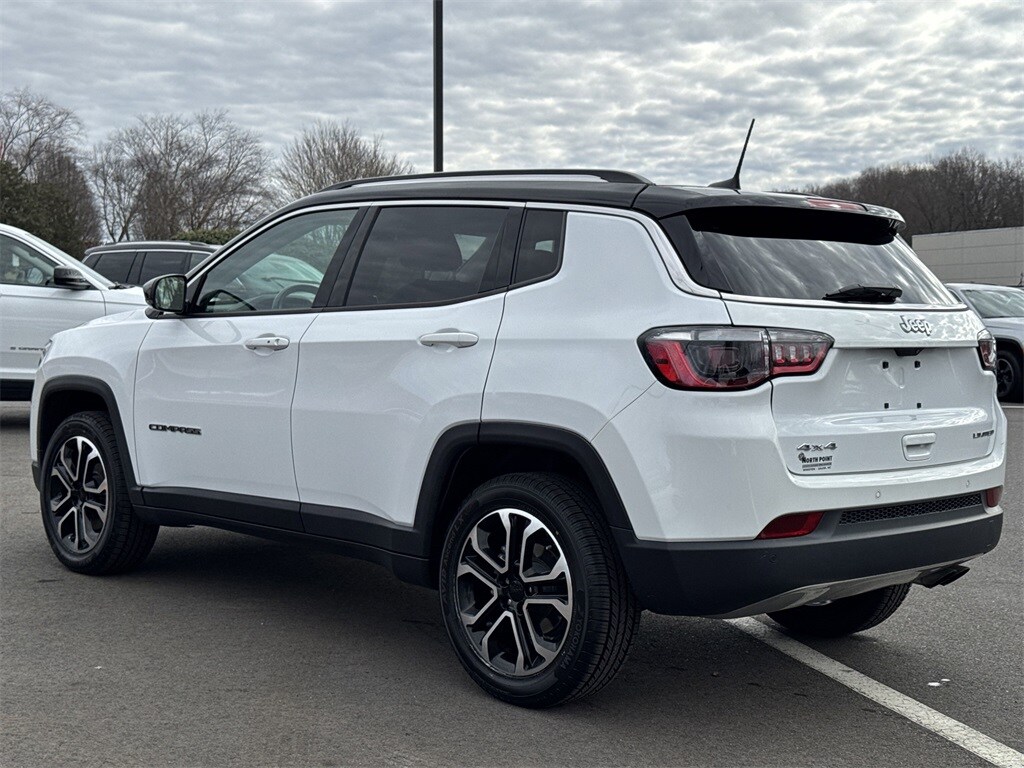 Thank you for viewing this Certified Pre-owned 2022 Jeep Compass Limited 4x4 offered in Bright White Clearcoat with the Black interior! This vehicle provides excellent fuel economy with 30 MPG Highway! This Compass comes well-equipped with the following options: Adaptive Cruise, Backup Camera, Blind Spot Detection, Cross-Traffic Alert, Daytime Running Lights, Fog Lamps, Lane Departure Warning, Lane Keeping Assist, LED Headlights, Security System, Tire Pressure Monitor, Auxiliary Audio Input, Bluetooth, MP3 Player, Premium Sound System, SiriusXM, Steering Wheel Audio Controls, Touch Screen Display, Bucket Seats, Leather Seating, Power Driver Seat, Heated Front Seats, Heated Steering Wheel, Leather Steering Wheel, Keyless Entry, Climate Control, Keyless Start, Remote Start, Power Door Locks, Power Mirrors, Power Windows, Aluminum Wheels, Rear Spoiler, 3.73 Axle Ratio, Four Wheel Drive, Regular Unleaded I-4 2.4 L/144 Engine, 9-Speed Automatic w/OD Transmission and much more! The Jeep Pre-owned Certification provides up to a 7-Year/100,000 Mile Powertrain Limited Warranty! And with North Point's attractive financing offers, driving a quality pre-owned Compass has never been easier! North Point believes you deserve an exceptional pre-owned Jeep purchase experience! Get it from a dealer who truly cares by visiting North Point Chrysler Dodge Fiat Jeep Ram at 7726 North Point BLVD, Winston-Salem, NC 27106. The Showroom Hours are 9am-7pm Monday-Friday, 9am-6pm Saturdays, and Closed Sundays. Or visit us anytime at www.NorthPointCJD.com! All Pre-Owned Vehicle pricing includes $1,500 finance cash. See Disclaimer for terms and conditions.