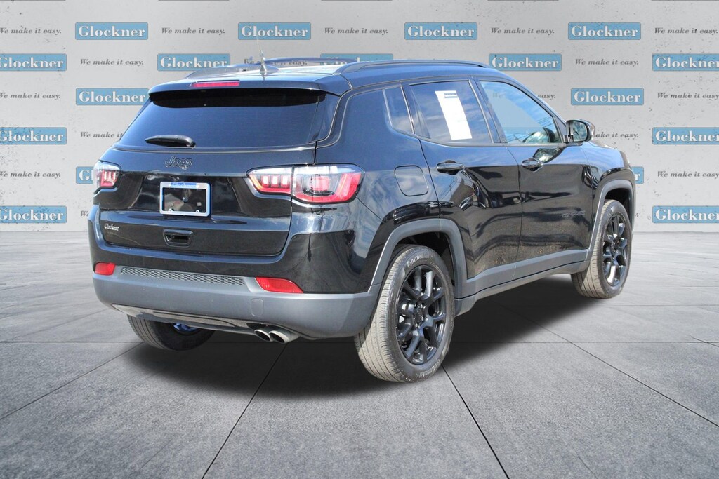 Glockner Chevrolet is proud to offer this wonderful-looking 2022 Jeep Compass in Diamond Black Crystal Pearlcoat. This 2022 Jeep Compass has passed our comprehensive inspection and comes with the following features; Quick Order Package 28B Altitude (Altitude Special Edition, Black Day Light Opening Moldings, Black Headliner, Black Roof, Bright Exhaust Tip, Gloss Black Badges, Gloss Black Grille & Crosshairs, Gloss Black Lower Rear Fascia Valance, Light Tungsten Interior Accent Stitching, Piano Black Interior Accents, and Wheels: 18 x 7 Gloss Black Painted Aluminum), Sun and Sound Group (Power Front/Fixed Rear Full Sunroof and Premium Alpine Speaker System), Glockner Certified Certified, 17 x 7 Painted Aluminum Wheels, 3.502 Axle Ratio, 4-Wheel Disc Brakes, 6 Speakers, ABS brakes, Air Conditioning, Alloy wheels, AM/FM radio: SiriusXM, Anti-whiplash front head restraints, Auto High-beam Headlights, Brake assist, Bumpers: body-color, Compass, Delay-off headlights, Driver door bin, Driver vanity mirror, Dual front impact airbags, Dual front side impact airbags, Electronic Stability Control, Emergency communication system: SiriusXM Guardian, Four wheel independent suspension, Front anti-roll bar, Front Bucket Seats, Front Center Armrest w/Storage, Front fog lights, Front reading lights, Fully automatic headlights, Heated door mirrors, Illuminated entry, Knee airbag, Leather Shift Knob, Low tire pressure warning, Occupant sensing airbag, Outside temperature display, Overhead airbag, Overhead console, Panic alarm, ParkView Rear Back-Up Camera, Passenger door bin, Passenger vanity mirror, Power door mirrors, Power steering, Power windows, Premium Cloth/Vinyl Bucket Seats, Radio: Uconnect 5 w/10.1 Display, Rear anti-roll bar, Rear seat center armrest, Rear window defroster, Rear window wiper, Remote keyless entry, Roof rack: rails only, Speed control, Split folding rear seat, Spoiler, Steering wheel mounted audio controls, Tachometer, Telescoping steering wheel, Tilt steering wheel, Traction control, Trip computer, and Variably intermittent wipers. Clean Auto Check/No Accidents Reported, One Owner, Full Balance of Factory Warranty, Local Trade, Altitude Special Edition, Black Day Light Opening Moldings, Black Headliner, Black Roof, Bright Exhaust Tip, Gloss Black Badges, Gloss Black Grille & Crosshairs, Gloss Black Lower Rear Fascia Valance, Light Tungsten Interior Accent Stitching, Piano Black Interior Accents, Power Front/Fixed Rear Full Sunroof, Premium Alpine Speaker System, Quick Order Package 28B Altitude, Sun and Sound Group, Wheels: 18 x 7 Gloss Black Painted Aluminum. Certified. Certification Program Details: Type your description here.