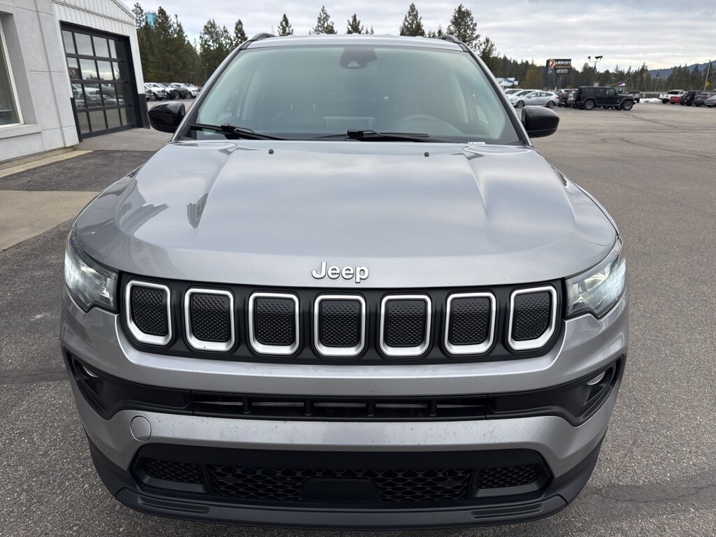 CARFAX One-Owner. 4WD. 22/30 City/Highway MPG. Pierce Auto Center is North Idaho’s leader in Pre-Owned Sales! Buy your next Pre Owned vehicle from a name you can trust, Pierce Auto Center is Family owned and operated and a stand out in the community both in and out of the Dealership. The experience does not end when you purchase from Pierce but continues with our award winning service department and staff! Need to sell your current vehicle? No Problem! Take advantage of our trade in program offering you the most for your current vehicle, often more than you can get on your own! Each of our quality Pre-Owned Vehicles goes through an extensive inspection performed by fully certified mechanics, the kind of service only offered at a New Car Dealership! Imagine all you could do with the money you save on a used Chrysler, Dodge, Jeep and RAM from Pierce Auto Center. Proudly serving drivers from Sandpoint, Post Falls, Coeur D'Alene and Spokane WA. 2022 Jeep Compass Latitude Billet Silver Metallic Gray