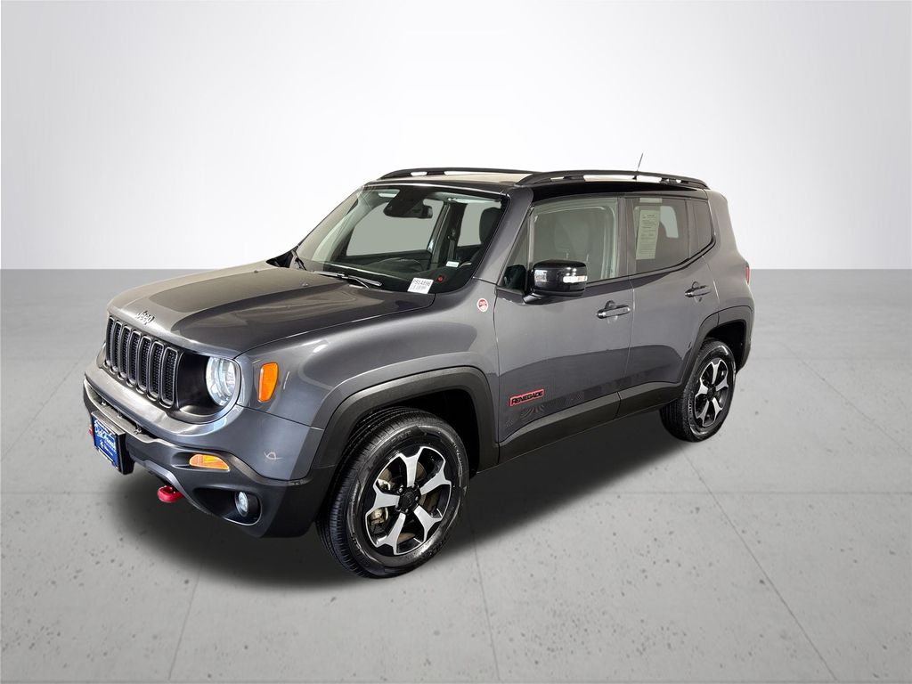 Performed maintenance: including oil & filter change, cabin & engine air filter, wiper blades, professional detail, and 100+ point safety & mechanical inspection. CARFAX One-Owner. Clean CARFAX. Renegade Trailhawk, 4D Sport Utility, 1.3L I4, 9-Speed 948TE Automatic, 4WD, Graphite Gray, Black Cloth, 17" x 6.5" Aluminum Wheels, Delay-off headlights, Dual-Pane Panoramic Power Sunroof, Fully automatic headlights, Heated front seats, Navigation System, ParkView Rear Back-Up Camera, Power driver seat, Premium Audio, Quick Order Package 22C, Steering wheel mounted audio controls, Sun/Sound Group, Turn signal indicator mirrors. The Chrysler/Jeep/Dodge/Ram Factory Pre-Owned Certified Program consists of the following components: The factory backed 7 year/100,000 mile powertrain warranty, the factory backed 3 month/3,000 mile full mechanical coverage, roadside assistance including towing, fixing a flat tire, jump starting a battery, locksmith service, or gas if you run out, rental car allowance, 3 months of Sirius XM Satellite Radio Service and more. Ask one of our Certified Sales Consultants for more information. Warranty: This Dick Hannah used vehicle comes with limited warranty coverage of 100% labor and 100% parts for 12 months or 12,000 miles, whichever comes first. See dealership for full warranty details. See dealership representative for complete program details. Call and schedule your test drive experience today. You won't be disappointed. Open 7 days a week.
