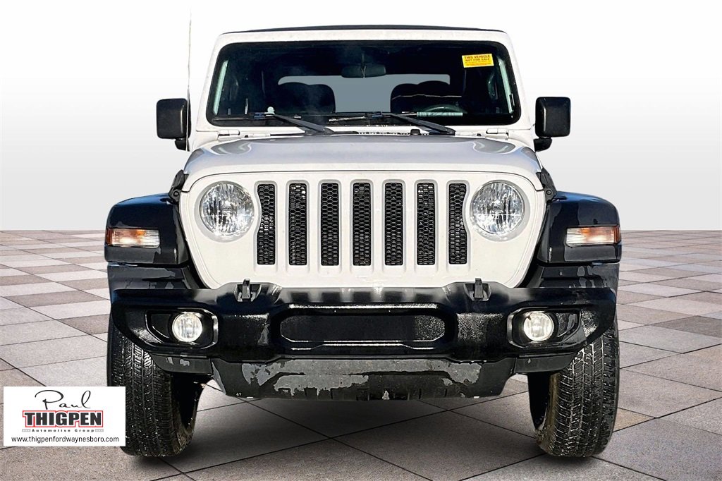 Recent Arrival! Clean CARFAX. Certified. Bright White Clearcoat 2021 Jeep Wrangler Sport 4WD 8-Speed Auto 3.6L V6 Ford Blue Certification Certified, 3.45 Overall Top Gear Ratio, 4-Wheel Disc Brakes, 4-Wheel Disc Brakes, Apple CarPlay, Auxiliary Battery, Brake assist, Cloth Low-Back Bucket Seats, Compass, Delay-off headlights, Driver door bin, Driver vanity mirror, Dual front impact airbags, Dual front side impact airbags, Electronic Stability Control, Emergency communication system: SiriusXM Guardian, Engine Oil Cooler, Front anti-roll bar, Front Bucket Seats, Front Center Armrest w/Storage, Front fog lights, Front reading lights, Global Telematics Box Module (TBM), Google Android Auto, Integrated Center Stack Radio, Integrated roll-over protection, Integrated Voice Command w/Bluetooth, Jeep Trail Rated Kit, Low tire pressure warning, MOPAR All-Weather Floor Mats, Non-Locking Fuel Cap w/o Discriminator, Normal Duty Suspension, Occupant sensing airbag, Outside temperature display, ParkView Rear Back-Up Camera, Passenger door bin, Passenger vanity mirror, Power steering, Quick Order Package 24B Sport (DISC), R1234YF A/C Refrigerant, Radio data system, Radio: Uconnect 3 w/5" Display, Radio: Uconnect 4 w/7" Display, Rear anti-roll bar, Rear reading lights, SiriusXM Guardian-Included Trial (B), SiriusXM Radio Service, SiriusXM Satellite Radio, Speed control, Start-Stop Dual Battery System, Steering wheel mounted audio controls, Tachometer, Telescoping steering wheel, Tilt steering wheel, Traction control, Trip computer.