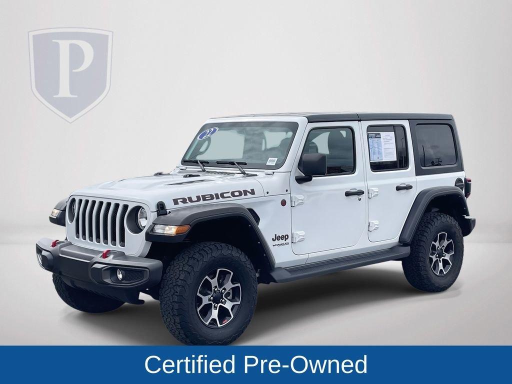 Jeep Certified Pre-Owned means you not only get the reassurance of a 3-Month/3,000-Mile Maximum Care Limited Warranty, but also up to a 7-Year/100,000-Mile Powertrain Limited Warranty, a 125-point inspection/reconditioning, 24/7 roadside assistance, rental car benefits, and a complete CARFAX vehicle history report. This 2022 Jeep Wrangler Unlimited Rubicon is a true off-road legend, built to tackle any terrain with uncompromising capability. Powered by a robust 3.6L V6 engine and equipped with a reliable 8-speed automatic transmission, this Wrangler delivers impressive performance both on and off the beaten path. With its legendary 4WD system and Rubicon-specific features, this Wrangler is ready to conquer the most challenging trails, while still providing a comfortable and refined driving experience on the open road. Inside, the cabin is outfitted with premium leather-trimmed seats, a heated steering wheel, and a wealth of advanced technology features, including a large touchscreen infotainment system, Apple CarPlay, Android Auto, and a premium audio system. The Wrangler's iconic design is complemented by a sleek white exterior, ensuring this vehicle turns heads wherever it goes. Safety is also a top priority, with features like blind spot monitoring, rear park assist, and a backup camera providing added peace of mind. The Cold Weather Group and Safety Group packages further enhance the Wrangler's versatility, making it a truly capable and well-equipped off-road companion. As a Certified Pre-Owned Jeep, this Wrangler Unlimited Rubicon has undergone a rigorous 125-point inspection and comes with a comprehensive warranty, ensuring you can enjoy the legendary Jeep experience with confidence. With its unparalleled off-road capabilities, premium features, and Certified Pre-Owned status, this 2022 Jeep Wrangler Unlimited Rubicon is an exceptional value that is sure to impress.